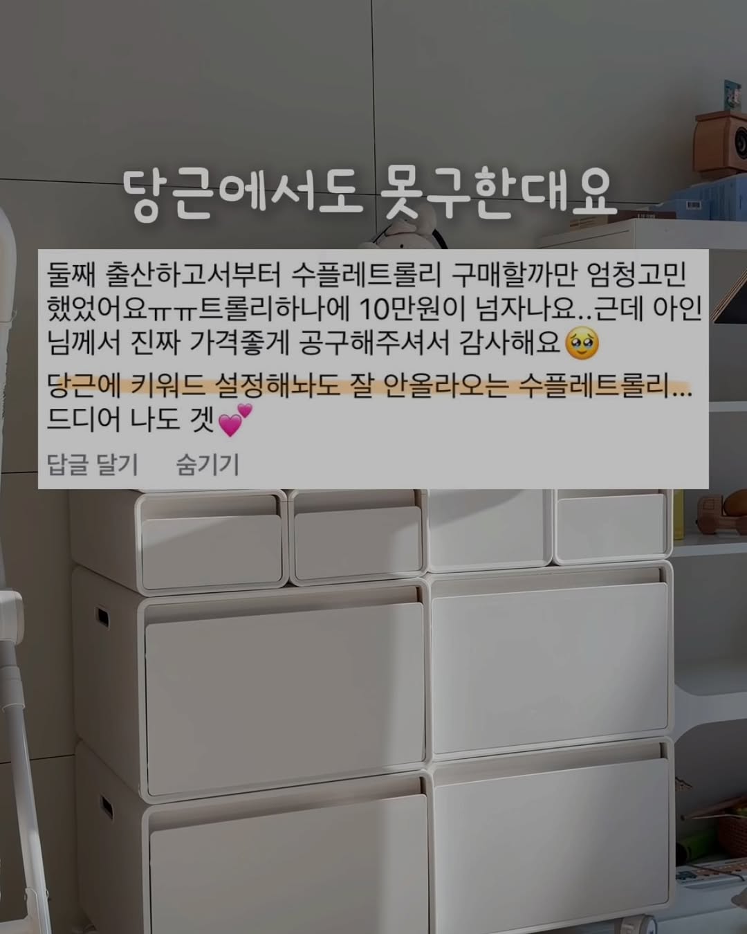 #오늘마감 주문폭주중인 트롤리&보관함🔥 이렇게 많이 기다리신줄도 모르고 전날에야 공지한 나 반성해.. 급하게 진행된 공구라 기다리셨는데도 아직 알림 못받으신 분들‼️ 내일(목)까지만 최저가 공구 진행하니 막차 탈 시간이 왔어요🚗 💬아직 링크 못받으신 분들은 🩷 달아주시면 보내드릴게요 가장 인기있는 구성은 기본형+C형추가 나중에 단품 추가만도 가능해요 :) 물티슈, 화장지, 청소용품도 넣기 좋은데 이런 고오급 플라스틱 수납함은 진짜 비싸요..👀10만원 훌쩍 요즘은 육아템 프리미엄도 붙는다던데 뉴코코맘은 합리적인 가격 그대로! +) 공구가 할인까지 받아가세요🙌🏻