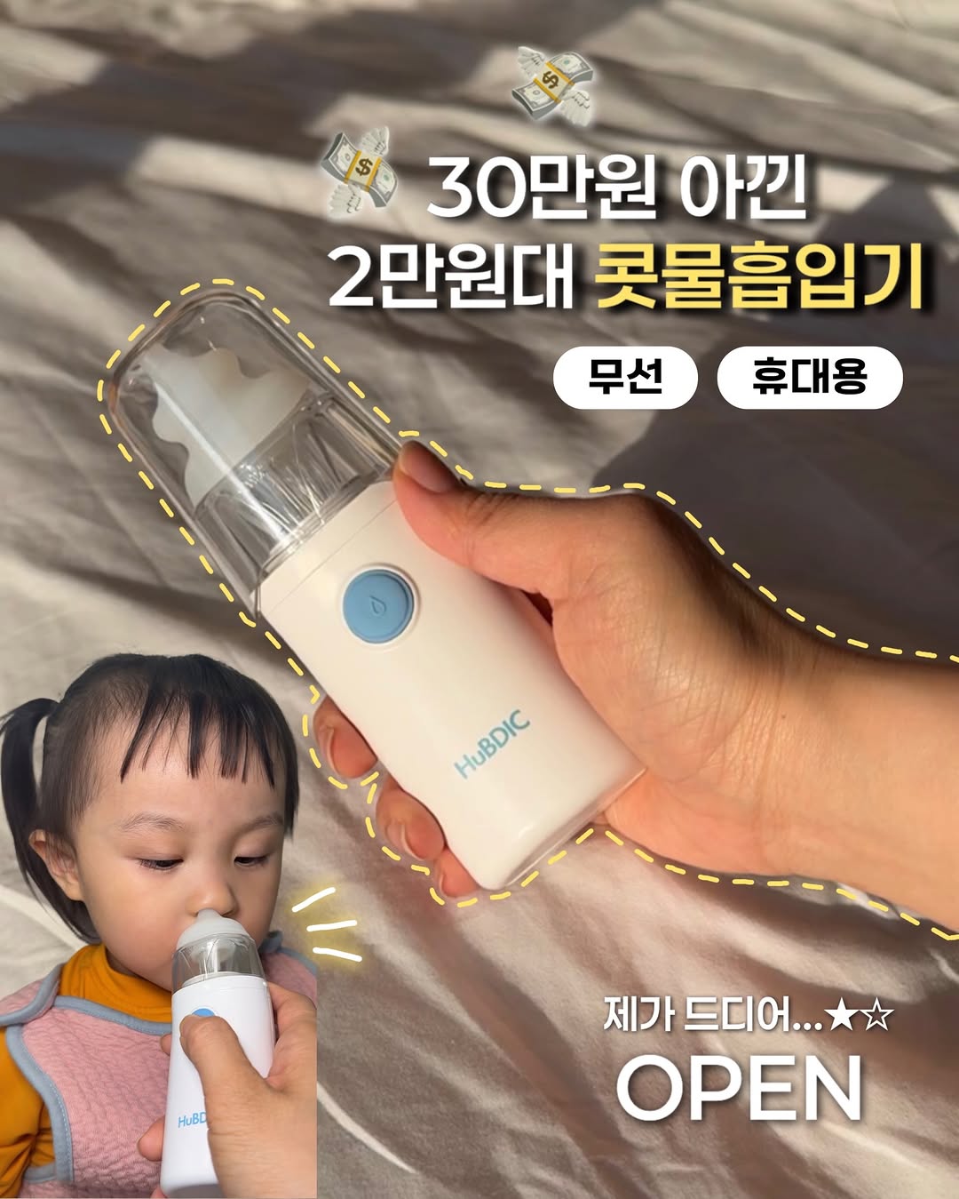 ‼️잠시 품절되었으나 3.13금 오전중에 같은라인제품으로 재입고되니 기다려주세요‼️ 6개월 동안 공구 요청하다가🙋🏻♀️ 드디어 허락 받은! 귀한 #휴비딕공구 OPEN 📌댓글로 '링크' 달면 바로 최저가링크 슝=͟͟͞͞➳❥ 알림댓글 하루만에 2000개;;;; (얼른 get하세요!! 수량이 걱정되네요..) 저 같은경우 랑랑이 출산준비물 살 때. 20~30만원 하는 대형콧물흡입기 보고... ✔ 너무 크고 ✔ 소리도 크고 ✔ 가격도 부담이라 “🤦🏻♀️이걸 집에 꼭 둬야 하나?” 싶어서 안 샀거든요. 근데 아이 키우다 보니 콧물은 진짜 계속 생기더라구요. 근데 저 큰~흡입기는 시간이 지나도 안사길 잘했다~ 싶어요!👏🏻👏🏻👏🏻 왜냐면 제가 이 휴대용 #콧물흡입기 추천받아 쓰는데 너무 만족스러운거에요. 제가 1년 넘게 내돈내산으로 써봤는데 ⠀ ⠀ 💛 #휴비딕콧물흡입기 좋은점💛 ✅ 대형에비해 가격 1/10, 크기 1/10 ✅ 작아서 아이가 덜 무서워하고 ✅ 소리도 크지 않고 ✅ 무선에, 휴대용이라 외출 때도 편하고 ✅ 구조가 단순해서 세척도 쉽고 무엇보다 흡입력 생각보다 충분해요. (영상처럼 날계란으로 테스트도 해봤어요 😂) 큰 흡입기 있어도 아이들 거부가 심해서 못 쓰는집 많더라구요? (심지어 그건 의료기기라 당근 불가상품임..) 👉 그래서 “이건 진짜 공구하면 좋겠다” 싶어서 6개월 전부터 휴비딕 본사에 요청했는데ㅋㅋ 이번에 드디~어 진행하게 됐어요. 그리고 가장 중요한 가격. 제가 쓰던 그 제품 공구가 26,900원!!! (아..난 4만원대에 삼;;) 솔직히 이 가격이면...! ✔ 처음 콧물흡입기 써보는 분 ✔ 큰 흡입기 부담스러운 분 ✔ 휴대용 하나 더 필요한 분 다 편하게 쓰실 수 있을 것 같아요. ⠀ ⠀ •┈┈┈•┈┈┈•┈┈┈ ⠀ ⠀ [ 랑랑맘 x 휴비딕 #휴대용콧물흡입기 ] ⠀ ✔️ 정가 41,000원 → 공구가 26,900원 📅 기간 : 3/12목~15일 (4일간) 💛 수량 한정 open~ 💛 🎁공구혜택 1) 무료배송 2) 전원 선물 증정 (고급물티슈) 3) 구매인증 5명 추첨 스타벅스 쿠폰 "구매완료+휴대폰 뒷자리4개" 오픈피드에 댓글로 달아주세요! 예고릴스에 알림댓글 달아주신 분들,,, 정~말 많았는데 기다리셨죠🥹!! 드디어 공구 OPEN 했어요. 📌댓글로 '링크' 달면 바로 최저가링크 슝=͟͟͞͞➳❥ ⠀ #콧물흡입기공구