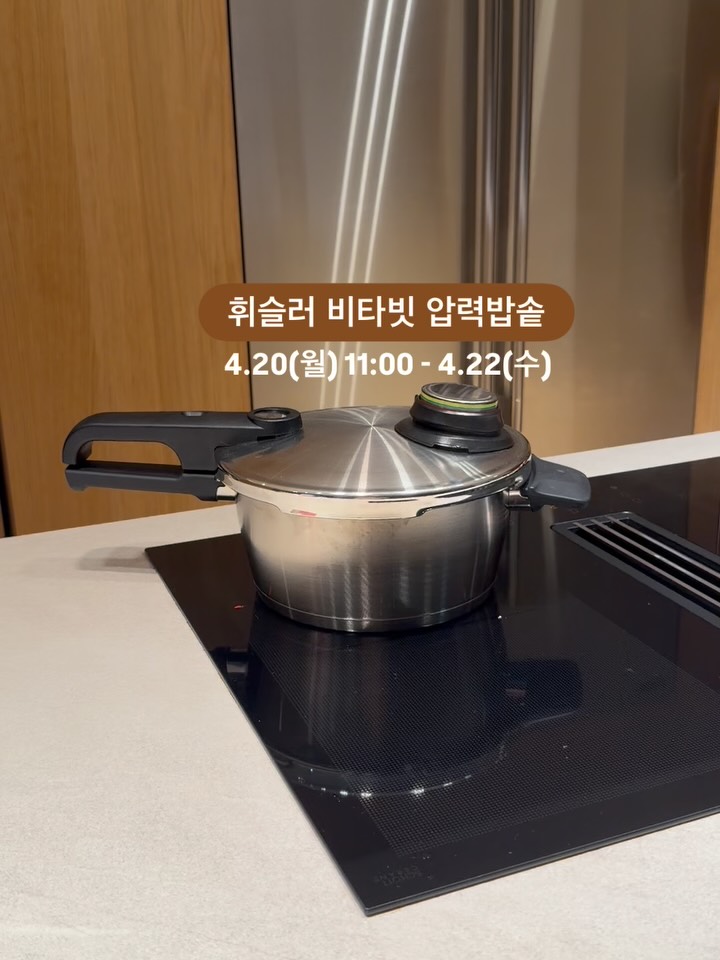 휘슬러 비타빗 압력밥솥 공구오픈! 까사림 최초 단독 공동구매입니다. 이번 독일 암비안떼 박람회에서 휘슬러의 다양한 라인업을 구경하고 왔는데요 이번 공구에서 보여드리는 비타빗은 모두 독일 직수입 제품이고 백화점에서도 만나보실 수 있는 프리미엄 라인입니다. 까사림 최초 단독 공구로 정말 좋은 혜택으로 준비했어요. 밥지을때 물론 쌀이 좋아야 하는건 기본인데 좋은 쌀에 휘슬러의 기술력이 더해지면 밥맛 정말 최상으로 끌어 올려집니다. 높은 압력과 고온으로 빠르게 가열하기 때문에 쌀 속까지 수분이 깊게 침투해서 윤기있고 쫀득한 식감이 나와요 이번 공구의 주인공은 3.5리터입니다. 삼발이 찜기 포함이라 맛있는 밥은 물론이고 고기, 찜, 국물 요리도 다양하게 활용할수 있는 사이즈예요. 엄마가 딸에게 물려줄수 있을 만큼 오랜 시간 가치있게 사용되는 살림템. 좋은 가격에 만나보세요 ✅공구기간 : 4/20(월)오전11시~22(수)23시59분 마감 ✅라이브방송 : 4/20(월) 오전11시(딱! 1시간만 진행) 까사로그!! 까사림 집 현장 라이브! 까사림 PICK! ‘압도적인 밥맛’ 비타빗 압력솥 특가 혜택!! ✅배송일정 : 오후 1시 이전 주문 건 당일 발송, 오후 1시 이후 주문 건 익일 발송 (주문 폭주 시 1-2일 추가소요될 수 있음) ✅공구옵션 : -비타빗 프리미엄 압력솥 S4 22cm : 3.5L/4.5L (찜기, 삼발이 포함 구성) ✅택배사 : 한진택배 📌혜택정리 1️⃣비타빗 압력솥 구매 전고객 사은품 휘슬러 스텐주걱 1개 증정 (공홈가 62,000원 상당, 본품과 합배송) 2️⃣라이브 방송 중 구매 인증 10명 추첨 휘슬러 사각밀폐용기 M+L 2종 증정 구매 후 라이브 화면에서 선물박스 클릭 필수!! (공홈가 149,000원 상당, 추첨 후 본품과 합배송) 3️⃣실결제가 기준 50만원 초과 결제 시 사은품 키친듀오 2P(계량&멀티피처) 증정 (공홈가 60,000원 상당, 본품과 분리배송) 4️⃣요일별 카드 5% 즉시할인 20(월) : 농협/삼성 21(화) : 하나/현대 22(수) : 삼성/롯데 5️⃣구매 시 10% 적립(최대 3만 원) CJ온스타일 앱으로 구매 후 공구기간 내 ‘적립하기’ 신청, 5/15(금) 적립금 지급예정 및 5/31(일)까지 적립금 사용가능. 반드시 CJ온스타일 앱으로 구매해주셔야 적립!! (간편회원, 통합회원 로그인 상관없이 신청가능 단, 웹으로 구매 시 적립 신청 불가) 6️⃣공구기간 전 카드사 6개월 무이자 혜택 KB국민/신한/삼성/비씨/현대/ 롯데/하나/우리/씨티/NH농협 단, 카카오페이/토스페이 무이자 적용불가 7️⃣2026 봄맞이 깜짝 경품찬스! 휘슬러 깜짝위크 기간 내 구매고객 대상 20명 추첨 휘슬러 인덕션 토파즈 1구 증정 (5/11(월) CJ온스타일 게시판 발표, 제세공과금 22%) 📌휘슬러 비타빗 프리미엄 압력솥 특징 -100% 독일 생산, 프리미엄 퀄리티 -제품 품질 보증 10년(스테인리스 부분) -내구성 높은 18-10 스테인리스 소재 -4단계 압력조절로 다양한 요리 가능 -신호등 압력밸브로 조리 상태 확인 가능 -유로매틱 시스템으로 맛과 영양 보존 -쿡스타 3중 바닥으로 빠르고 균일한 열전도 -엠보싱 노보그릴 바닥으로 높은 열효율 -5중 안전장치로 자동 압력 배출 -스팀 릴리즈 기능으로 빠른 압력 해제 -‘찰칵’ 잠금 구조로 쉬운 사용 -내부 듀얼 계량 눈금으로 간편한 계량 -식기세척기 사용 가능(분리 후) -인덕션 포함 모든 열원 사용 가능 -3.5L/4.5L로 1~2인/가족용까지 선택 가능