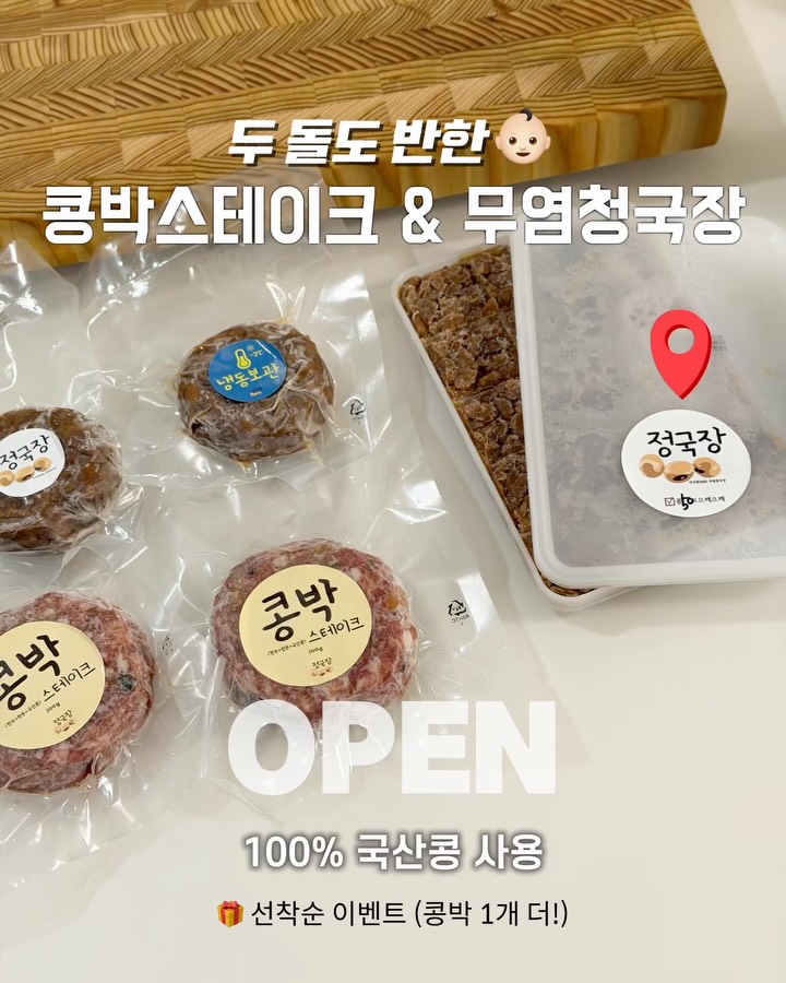 🎁 한정수량 / 대신 선착순 이벤트 ♥️ 두 돌도 반한 100% 국산콩을 사용한 건강 먹거리 콩박스테이크 & 무염청국장 오픈 !! 잠시후 10시 오픈! ✅ 댓글로 [ 핫딜 ] 남겨주시면 빠르게 링크 보내드려요 🔥성장기 단백질 보충에 최고인 적색육와 콩의 만남🔥 장 건강 개선은 덤입니다 ...?.!!! 👍🏼 변비 있는 아가들은 무염청국장 꼭!! 주에 2,3번 이유식, 유아식에 활용하시면 쾌변은 따논 당상! ‼️한돈, 한우에 푹 익은 국산콩이 콕콕 ‼️떡갈비 상위 호환버젼 ?!! ‼️짜지 않은 신박한 무염 청국장까지 🎁 선착순 / 구매완료 이벤트 “구매완료+연락처 맨 뒤 4자리“ 남겨주세요 👉🏻선착순 10분 콩박스테이크 한 팩 더! 👉🏻5분께 5,000원 현금 페이백 + 이벤트 하나 더! @junggukjang 까지 팔로우 후 구매 완료 댓글 남겨주신다면 추첨통해 추후 정국장 스토어에서 사용 가능한 3,000원 쿠폰 보내드릴게요! (10명) ᠆᠆᠆᠆᠆᠆᠆᠆᠆᠆᠆᠆᠆᠆᠆᠆᠆᠆᠆᠆᠆᠆᠆᠆᠆᠆᠆᠆᠆᠆᠆᠆᠆᠆᠆᠆᠆᠆᠆᠆᠆᠆ ▪️우연맘 X 정국장 라인업 * 콩박스테이크 (한우 + 한돈 + 국산콩) 5개 set 23,700원 10개 set 45,000원 * 무염청국장 (⭐️콩박 주문 시 추가 옵션) 큐브청국장 200g 1판 (50% 으깸) 8,500원 원형 청국장 100g 3개 set 8,500원 콩박스테이크는 굉장히 슴슴한 간이 살짝! 첨가물, 방부제, 연육제 안들어가요!❌❌❌ 청국장 무염인 곳 찾기 은근 어려운거 아시죠 전 여기로 평생 정착! 😎♥️ ᠆᠆᠆᠆᠆᠆᠆᠆᠆᠆᠆᠆᠆᠆᠆᠆᠆᠆᠆᠆᠆᠆᠆᠆᠆᠆᠆᠆᠆᠆᠆᠆᠆᠆᠆᠆᠆᠆᠆᠆᠆᠆ 신박하다 신박해 한우, 한돈을 잘게 다져 푹 익은 콩을 콕콕!!! 고기의 담백함과 콩의 부드러움이.. 입에서 녹는다 녹아 ! 👉🏻콩박스테이크는 떡갈비 좋아하는 아가면 진짜 좋아할거구요 느낌이 살짝 다르답니다 요건 고깃결대로 부숴지는 느낌!! 수제지만 더 수제같은 스타일이랄까 .. 😭👍🏼 사실 알고보니, 사장님 자제분이 육고기를 잘 먹지않아 직접 개발하신 콩박 스테이크더라구요. 전부 수제로 만드시는 거라 시간도 걸리고 그만큼 정성은 가득! 청국장은 변비로 고생하는 이유식하는 아기들한테 이미 소문나있는 무염청국장이구요 ♥️ 50% 으깬 큐브 청국장, 원형 청국장 두 가지 준비해놓았어요 시중에 파는 가염된 청국장이 아니라서 아이들한테 반찬, 국, 찌개 끓일 때 쇽쇽 추가만 해주어도 장 케어하기 너무 좋고 편해요 ᠆᠆᠆᠆᠆᠆᠆᠆᠆᠆᠆᠆᠆᠆᠆᠆᠆᠆᠆᠆᠆᠆᠆᠆᠆᠆᠆᠆᠆᠆᠆᠆᠆᠆᠆᠆᠆᠆᠆᠆᠆᠆ 📅 일정 4/20(월) ~ 4/21(수) 단 3일간 🚛 배송비 4,500원 4/20부터 순차 출고됩니다 도서산간/제주지역은 익일 도착이 어려운 점으로 인해 주문 불가한 점 양해 부탁드립니다🙏🏻 📌무염 청국장은 콩박스테이크 주문 시 추가옵션으로 담으실 수 있는 점 착오 없으시길 바랍니다!