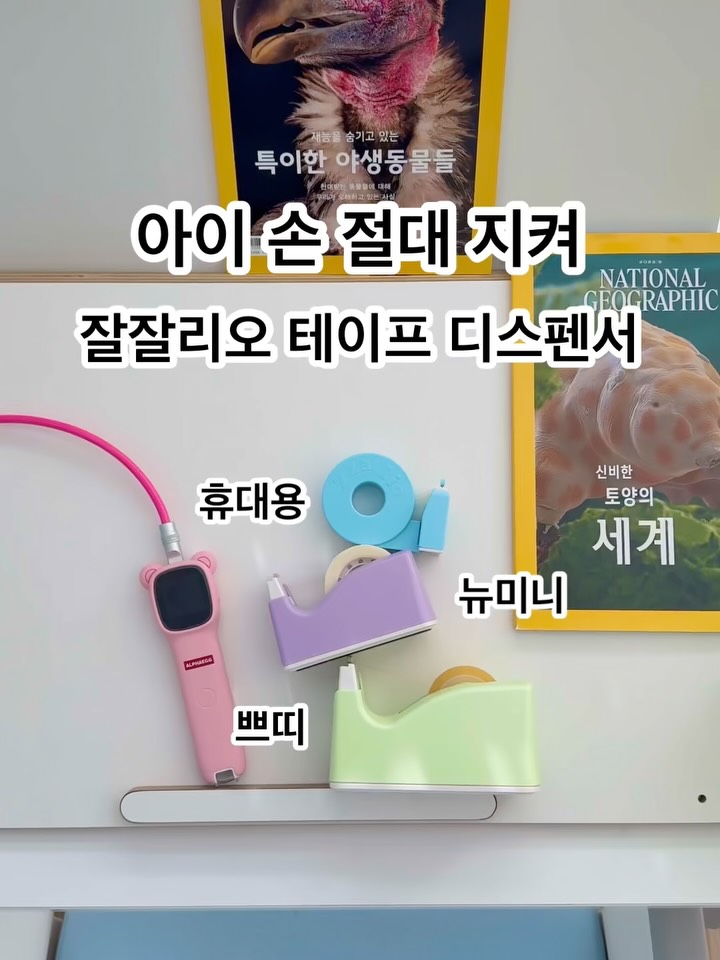잘잘리오💖 신학기 준비물 리스트에 있는 “테이프“ 아이들 손 다칠 걱정없는 잘잘리오 테이프 디스펜서로 바꿔주세요🤢 아이들 집에서도 학교 준비물로도 챙겨주시면 안전하게 사용이 가능해요! 잘잘리오 어린이 안전 테이프 디스펜서는 아이들 손이 다칠 수 있는 톱니 디스펜서의 단점을 보완하여 4,5세 어린이들도 안전하고 쉽게 사용할 수 있도록 만들어진 제품으로 우리나라에서 개발한 특허 제품으로 KC 인증받은 믿을 수 있는 안전한 문구템🤗 ✔️칼날이 숨어있어서 아이들 손다칠 위험❌ ✔️다른 테이프들과도 호환이 가능합니다. 🩵잘잘리오 뉴미니 폭 18-33mm 🩵잘잘리오 쁘띠 폭 24-33mm 🩵잘잘리오 휴대용 폭 15-25mm 📍디스펜서 컬러 선택 옵션안내 ➟ 화이트/핑크/옐로우/민트/퍼플/블루 #잘잘리오 구매는 @luvyul_home 프로필 링크🔗 #아이있는집 #잘잘리오공구 #테이프디스펜서 #테이프커터기