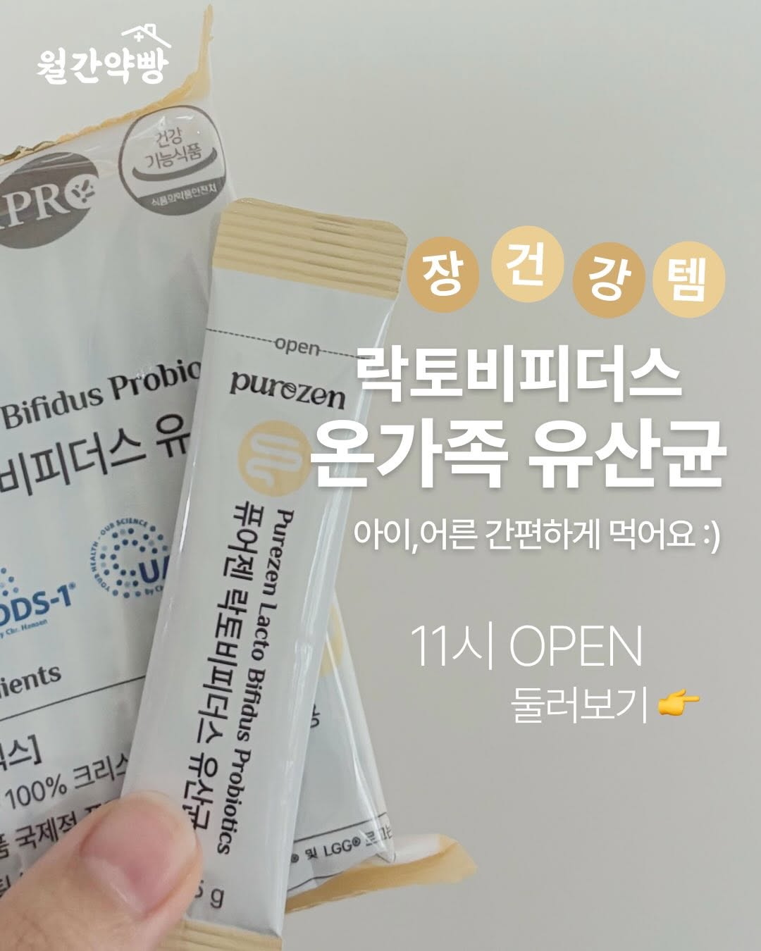 😇11시, 가루타입 유산균 오픈합니닷! 🫡제가 늘 강조하는 오디유의 ‘유’ 를 담당하는 친구죠. 우리집 둥이들은 저랑 같이 람노플 캡슐 제품을 꾸준히 먹어왔는데 아이들이 크면서 점점 불편하기도하고, 냉장보관이 번거롭기도 한 단점들이 있더라구요..! 아니나다를까 울 건강동지들한테서도 꾸준히 들어온 요청..! 아이들 먹기 편한 + 상온보관가능한 제품을 소개해달라!! 그래서 작년에 처음으로 런칭해서 꾸준히 소개해오고 있는 제품이지요. 😇람노플과 퓨어젠 모두 글로벌에서 손꼽는 아주아주 유산균을 오래 연구해온 회사의 균주를 넣은 제품이랍니다. 이런말 하는게 넘 웃기지만,, 람노플이 대치동 1등이라면 퓨어젠은 목동 1등..?🤣 (오글거리는 표현 어쩌죠..?ㅋㅋㅋ) 🤓암튼! 균배합도 정말 잘 잡았는데 먹기도 편하고, 보관도 쉬워서 꾸준히 챙기기가 참 좋은 템이랍니다. 우리 요즘 계속 장 이야기를 나누고 있잖아요?! 양질의 유산균은 단순히 💩의 문제가 아닌 몸 전체의 대사와 면역을 책임지는 역할 이기에 영양제를 딱 한가지만 먹는다고 하면! 전 무조건 유산균을 꼽으거에요. 그만큼 너무너무 중요한 성분! 🫶저와 울 동지들이 넘 애정하는 유산균, 이번에 새로 월약을 접하신 분들도 많은데 요 제품으로 같이 시작해보아요! 좋은거 함께 먹고싶은 맘으로 열어봅니다!🙈 제품 뿐 아니더라도 모오든 건강상담은 언제나 편하게 댓글 또는 카톡플친 ‘월간약빵’으로 남겨주세요 🙋♀️