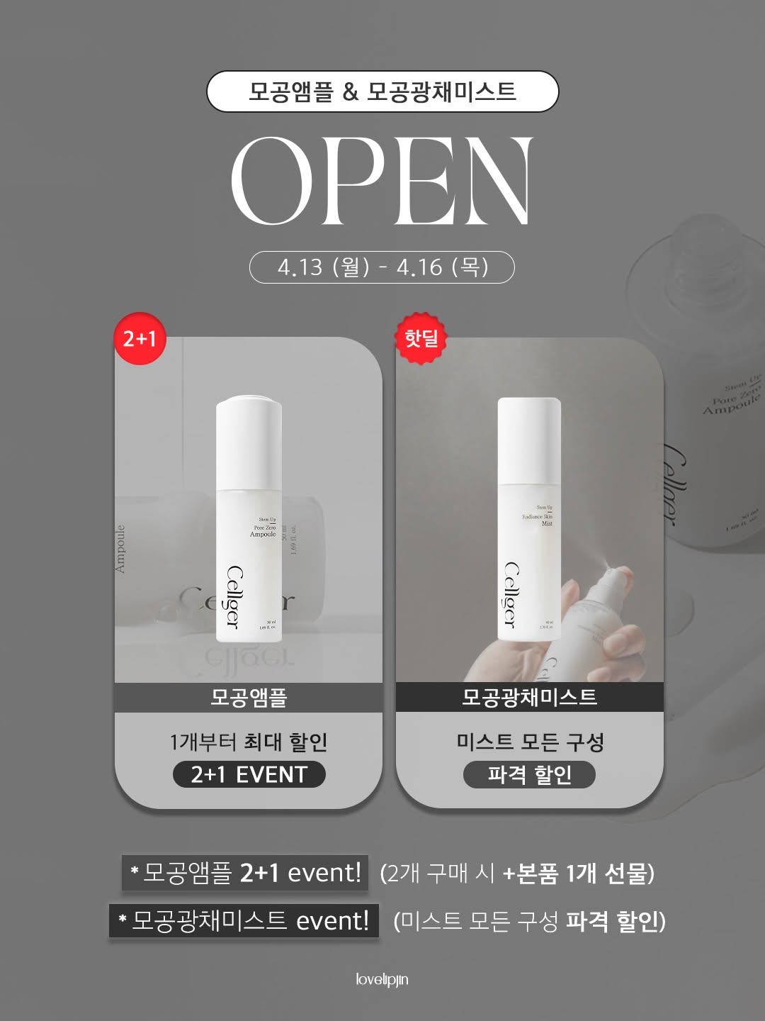 📌피부과 모공앰플& 미스트 오픈! 왔어요 왔어요! 품절대란 모공앰플 온라인 오프라인 이 모공템 난리났죠? 1개 최저가에! 2+1 이벤트까지 진행되구요! 우리 미스트… 이번에 초 핫딜 아시죠?🔥 66%이상 할인! 1만원 후반대 혜택까지! 이번만 진행되는 파격 핫딜입니다…! 그리고 이건 너무 파격가라 모든 구성 무배가 아니었는데 5개 구성은 오픈전 쓱 ✔️무료배송! 해뒀어요🫶🏻 이제 날 더워지면서 모공 늘어지고 난리일텐데 피부가 가장 지저분해보이는게 트러블도 잡티도 아닌 모공이라고 하잖아요 우리는 미리미리 관리하자구요! 📍모공라인 공구는 오늘 월요일 밤 9시부터 ~ 목요일 밤 12시까지 진행 됩니다! 🚚 배송은 우체국 택배로 발송! 내일 화요일부터 오전 10시 주문건까지는 당일 발송으로 배송이 시작됩니다! * 모공앰플 유통기한 / 28.05.01 * 미스트 유통기한 / 27.05.20 ⭐️모공에 모든 걸 올인한 피부과 모공 앰플⭐️ ✔모공 수 개선 임상 ✔모공 부위 리프팅 개선 임상 ✔항산화(DPPH)평가 완료 ✔피부 저자극 테스트 완료 모공 수가 감소 되면서 모공 부위가 리프팅이 된다면, 이게 진짜 모공앰플 아닌가요! 가볍게 보여주는 그런 흉내만 내는 제품이 아니구요! 모공을 다 없앨 순 없지만 제대로 된 제품으로 관리만 해준다면 우리 모공이 넓어지는 거 막을 수 있고! 넓어진 모공들도 줄일 수 있고! 쳐지고 늘어진 모공도 탄력있게 올릴 수 있다는 거! 우리 모공앰플이 있잖아요👌🏻 넓어진 모공으로 피부 스트레스이신 분들✋🏻 위아래로 쳐지고 늘어진 모공 피부 분들✋🏻 모공이 넓어서 화장 끼임이 있으신 분들✋🏻 블랙헤드 모공으로 피부가 지저분한 분들✋🏻 나비존 모공이 심하신 분들✋🏻 압출로 인해 모공이 넓어지신 분들✋🏻 건조하지 않고 진정까지 되는 저자극 모공앰플✋🏻 *사용방법, 순서, 꿀팁등은 내용이 너무 길어서 사이트와 공구글에 정리해서 올려두었어요! 이건 제가 게시물로도 다시 정리해서 올릴게요! 사이트에 정리해둔 사용 순서도 꼭 확인해 주시기요! ⭐️피부과 모공광채미스트⭐️ ✔️모공, 볼륨 개선 임상 완료 ✔️피부 광채 임상 완료 ✔️피부 항산화 임상 완료 ✔️피부 저자극 테스트 완료 모공부터 광채 항산화까지 관리해주는 미스트! 기초 마지막! 또는 화장 후에도! 언제든지 뿌려주세요! 이 구역에서 내가 제일 광나! 하고 싶다면 무조건! 뿌릴수록 광채는 물론, 모공 케어까지 해주는 미스트라면 무조건! 피부 생기는 살려주면서 무겁거나 끈적이지 않아서 트러블은 노! 정말 딱 예쁜 고급진 광만 살려주면서 모공케어해주는 미스트가 바로 깐달걀 미스트입니다! 미스트는 기초 마무리로도👌🏻 일상에서 수시로 수분 충전해주기요👌🏻 이 구역에서 내가 제일 광나! 1등 하고 싶은 분들✋🏻 트러블 피부도 광날 수 있다! 저자극 광채미스트✋🏻 미스트 그 이상! 항산화 관리가 필요하신 분들✋🏻 화장 후에도 모공 관리가 필요하신 분들✋🏻 답답하거나 무겁지 않은 미스트 찾으시는 분들✋🏻 정말 하나를 쓰더라도! 똑똑하게! 제대로 된 제품으로! 쓰셨으면 좋겠어요👌🏻 자세한 내용은 사이트에서 꼭 확인해 주세요! #모공#앰플#미스트