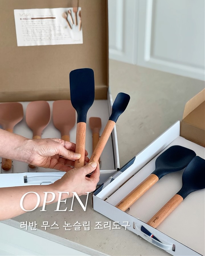 🧡러반 무스 논슬립 조리도구 세트 공구예고 요리하다 보면 꼭 찾게되는 조리도구! ✅ 스파츌라 ✅ 터너 ✅ 믹싱스푼 ✅ 서빙스푼 꼭 필요한 구성 4종 세트 준비했어요 그것도 1만원대 가성비로요 😊 헤드는 부드러운 실리콘이라 코팅팬 걱정 없이 편하게 사용 가능하고, 손잡이는 우드 타입이라 잡았을 때 따뜻한 느낌이 있어요. 미끄럽지 않게 안정적으로 잡히니까 손목 부담도 덜하고요. 주방에 걸어두기만 해도 괜히 정리된 느낌 나는 디자인 ✨ 블랙, 브라운 톤 모두 요즘 주방 분위기랑 잘 어울려요. 매일 쓰는 조리도구, 이왕이면 예쁘고 편한 걸로 한 번에 바꿔보세요. 📌공구일정 📢 03월02일-재고 소진시 마감 📍빠른구매 원하시면 아래 흔적 부탁드려요 :)