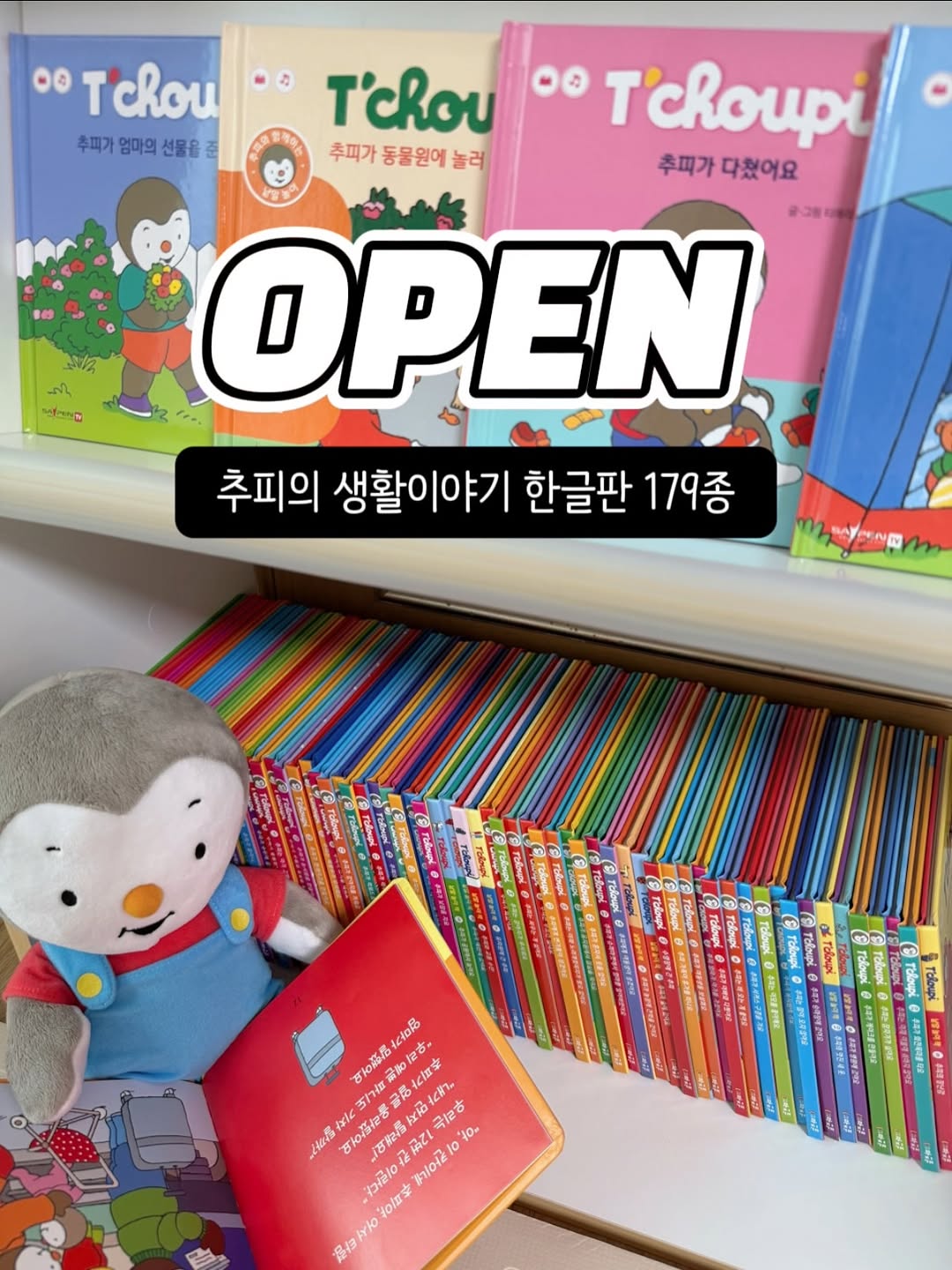 #공구오픈 추피의 생활이야기 한글판 OPEN💛 🎁 구매 완료 이벤트 나니맘 공구로 구매하신 분 중 추첨을 통해 1만원 페이백 해드릴게요! (구매완료, 휴대폰 뒤 4자리) 댓글로 남겨주세요🎁 ┈┈┈┈┈┈┈┈┈┈┈┈┈┈┈┈┈ 🎁 사전예고 이벤트 당첨자 안내 @movie_yim 추피 패밀리 인형세트 (4종) 보내드릴게요💛 참여해주신 모든 분들 감사합니다✨ ┈┈┈┈┈┈┈┈┈┈┈┈┈┈┈┈┈ 🎁 나니맘 공구 특별 혜택!! 🎁 추피 전집 구매 시, 구매자 전원 추피 워크지 & 책기둥 파일 메일 증정!!✨ 👉 구매링크에서 상품선택시 워크지 수령용 네이버 ID를 꼭 입력해주세요! ┈┈┈┈┈┈┈┈┈┈┈┈┈┈┈┈┈ 사실 요즘 생활동화 정말 쏟아지잖아요..? 그런데 나니가 추피만큼 좋아하는 책은 없었어요! 책 잘 안 보던 아이도 먼저 들고 오는 책💛 나니에게 책이 더 가까워지게 해준, 그래서 더 자신 있게 추천할 수 있는 추피! ‘추피 지옥’이라는 말, 괜히 있는 게 아니에요…😇 하루에도 몇 권씩 반복 요청은 기본이고, “추피 또 읽어줘!” 무한 루프 시작됩니다✨ . 저도 18개월쯤 추피를 들였는데, 이걸 왜 이제서야 샀지 싶을정도로 너무 좋아했어요~! 30개월이 넘어서는 책 표지만 봐도 제목과 내용을 술술 외워 말할 정도였고, 40개월이 지난 이제는 한글을 읽기 시작했는데, 오랫동안 읽어줬던 익숙한 추피 책과 함께하니 ”내가 이거 한번 읽어볼게“ 하면서 혼자 읽어보려고 시도하고, 더 재미있어하더라구요! . 아이들의 하루는 감정이 롤러코스터처럼 오르락내리락 하잖아요..? “엄마 나빠요!” 했다가 금세 “엄마 사랑해요~” 하는 추피, 정말 우리 아이 모습 그대로였어요🥹 ⠀ 추피는 아이가 함께 웃고, 울고, 화내고, 도전하면서 생활 속 작은 순간들을 차곡차곡 배워가게 해줘요. 배변훈련, 쪽쪽이 떼기, 친구와의 갈등, 혼자 해내는 성취감까지! 엄마가 늘 곁에 있어주지만, 책 속 추피가 대신 전해주는 위로와 용기가 있더라구요✨ ⠀ 그래서일까요? 책장 가득 책이 있어도, “읽고 싶은 책 가져와~” 하면 아이 손에 꼭 들려 있는 건 늘 추피예요💙 읽고 또 읽어도 질리지 않는 이유, 바로 우리 아이의 하루와 너무 닮아 있기 때문이죠! ┈┈┈┈┈┈┈┈┈┈┈┈┈┈┈┈┈ ✅ 추피의 생활 이야기 [한글판] ▪️ 생활동화 1위, 두돌~7세 필독서 ▪️ “추피 지옥”이라 불릴 만큼 빠져드는 매력 ▪️ 이미 엄마들의 수많은 후기와 칭찬으로 검증!! 📦 옵션 안내 1️⃣ 추피의 생활이야기 한글판 (전 179종) 2️⃣ 추피의 생활이야기 한글판 (전 179종) + 세이펜(레인온펜32GB) 3️⃣ 추피 프렌즈 인형 3종 4️⃣ 추피 패밀리 인형 4종 5️⃣ 대형 추피 인형 45cm ┈┈┈┈┈┈┈┈┈┈┈┈┈┈┈┈┈ 📚 최신 개정판 (총 179종) 구성 ▪️생활동화 71권 + 낱말놀이책 10권 + 스티커북 1권 ▪️생활동화 QR(E-book) 81권 + 추피송 4종 ▪️글자놀이 브로마이드 3종 + 게임놀이 브로마이드 3종 ▪️액티비티북 5권 ▪️주사위 비치볼 1개 ▪️소리내어 읽어주는 세이펜 적용 가능! ┈┈┈┈┈┈┈┈┈┈┈┈┈┈┈┈┈ 아이의 감정과 생활을 가장 따뜻하게 비춰주는 거울 같은 책! 책장 속 가장 친한 친구가 되어줄, 추피✨ 이번 기회에 아이와 꼭 만나게 해주세요🤍 ┈┈┈┈┈┈┈┈┈┈┈┈┈┈┈┈┈ 📅 공구 일정 4월 13일(월) ~ 4월 16일(목) ┈┈┈┈┈┈┈┈┈┈┈┈┈┈┈┈┈┈┈ 📦 배송 무료배송 ┈┈┈┈┈┈┈┈┈┈┈┈┈┈┈┈┈┈┈ 📦 구매 방법 프로필 하단 구매 링크 클릭하시거나, 댓글에 [링크] 남겨주시면 최저가 링크 DM으로 바로 보내드릴게요💛 .