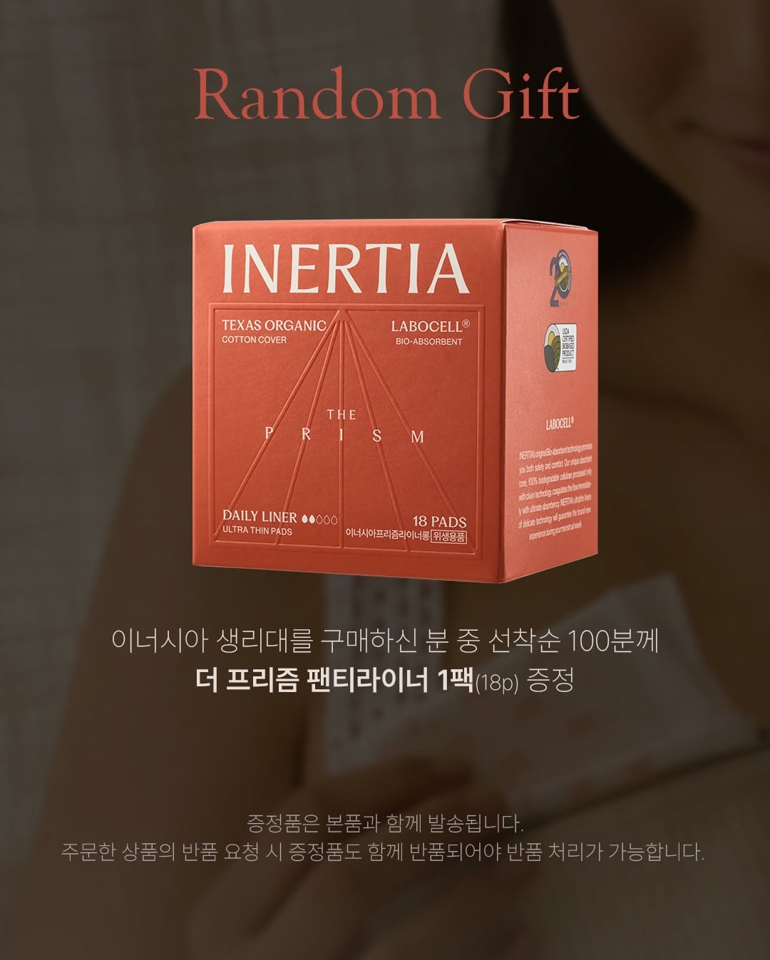 발암물질 미세플라스틱이 없는 유일한 생리대 이너시아. 100% 유기농 순면으로 제작되어 건강한 소재로 생리혈 흡수율을 극대화했습니다. 카이스트 여박사님들이 만든 제품으로, 안전하고 효과적인 선택입니다.