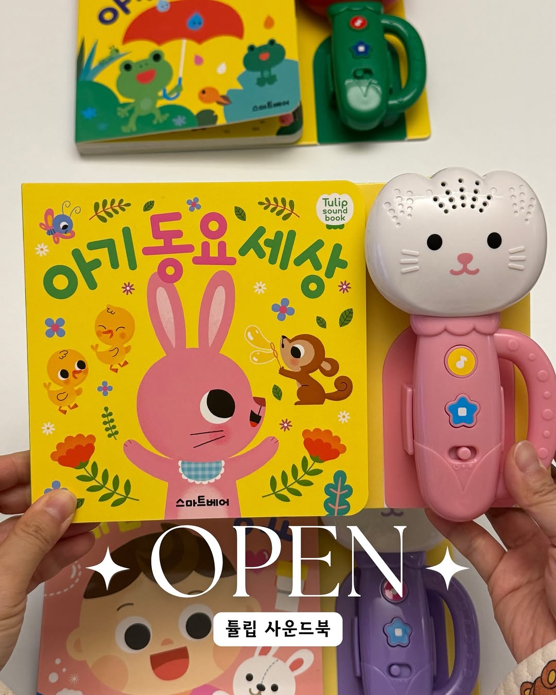 우는 아이도 뚝! 튤립 사운드북 오픈 🌷🎶 처음엔 잘 노는 것 같다가도 금방 흥미 잃고 다시 칭얼대고 👶🏻 이게 반복되죠.. 아기 놀이는 오래 가는 게 더 어렵고 계속 바꿔줘야 하고요 그래서 이 시기 되면 동요 사운드북 많이 찾으시더라고요 🎵 출산 준비물이나 선물 리스트에도 빠지지 않는 이유가 있고요!! 특히 튤립 사운드북은 버튼 한 번 누르면 동요가 쭉 이어지고 아기가 직접 누르고 반응하고 다시 눌러보고 이 흐름이 자연스럽게 이어져요 👶🏻 처음엔 그냥 누르는 게 재밌다가 노래 나오면 멈춰서 듣고 익숙해지면 흥얼거리기 시작하고요 🎶 ✔ 버튼 한 번으로 연속 재생 ✔ 아기 귀에 부담 없는 부드러운 소리 ✔ 눌러보면서 반응하는 놀이 구조 그래서 그냥 틀어주는 거랑은 확실히 달라요 🤍 그리고 이건 꼭 참고하시면 좋아요 🙌🏻 아기들은 물고, 빨고, 입으로 가는 게 기본이라 이런 사운드북은 🥕 중고로 들이기에는 조금 비추천이에요 🥲 겉은 닦을 수 있어도 스피커 구멍이나 틈 사이까지는 관리하기가 어렵거든요 그래서 이런 제품은 처음부터 깔끔한 상태로 시작하는 게 더 마음 편한 아이템이에요 🤍 잠깐 밥 준비할 때 차 안에서 이동할 때 “조금만 기다려줘…” 하는 순간에 혼자 집중하는 시간이 생겨요 👶🏻 이거 하나로 금방 질리던 놀이 시간이 조금 더 이어지고 엄마 손이 바쁠 때도 잠깐 숨 돌릴 틈이 생겨요 🤍 📆 공구기간: -4/16 👉🏻 자세한 내용은 프로필 링크에서 확인해주세요 :)