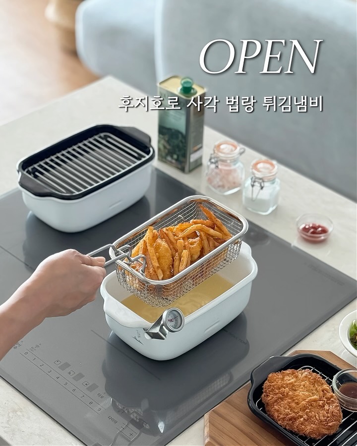 🧡후지호로 사각 법랑 튀김냄비 공구예고 집에서 튀김할 때는 기름이 너무 많이 들어가고, 튀긴 뒤 건져내는 것도 번거로워서 잘 안하게 되죠🤔 이번에 포유홈에서 준비한 후지호로 사각 법랑 튀김냄비는 집에서도 훨씬 간편하게 튀김 요리할 수 있는 아이템이에요💛 사각 형태라 재료 넣기 편하고 긴 새우튀김이나 감자튀김도 모양 흐트러짐 없이 넉넉하게 들어가요. 기본형은 튀김망 세트까지 함께라 여러 개 튀겼을 때 한 번에 건져 올려 기름 쏙 빼기 정말 편해요. 하나씩 건질 필요 없어 훨씬 간단하더라고요. 냄비 안쪽엔 기름 높이 표시선이 있어서 기름을 과하게 붓지 않아도 적당량만 넣어 알맞게 튀길 수 있어요. 집에서 튀김할 때 부담이 확 줄어들어요. 법랑 소재라 열전도도 좋고 변형에 강해 오래 쓰기 좋으며, 튀김뿐 아니라 오븐 사용도 가능해서 원팬 요리나 간단한 파스타 조리에도 활용할 수 있어요. 기본 사이즈, 와이드 사이즈 두 가지로 준비했으니 스타일에 맞게 골라보세요✨ 📌공구일정 📢 04월19일-재고 소진시 마감 📍빠른구매 원하시면 아래 흔적 부탁드려요 :)