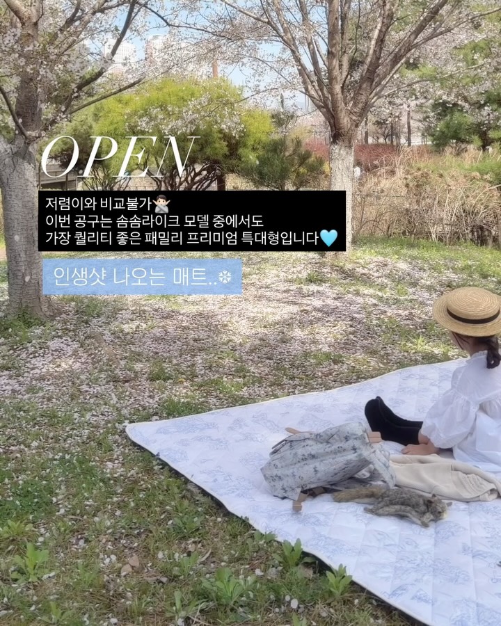 퀄리티가 다른 돗자리?! 솜솜라이크 프리미엄 특대형피크닉 매트🩵 #구매완료이벤트 #공구오픈 📌잠시후, 오전 11시 오픈🔔 저렴이와 돗자리와 비교불가❌ 지금 바로 ’링크‘ 댓글 남겨주시면 솜솜라이크 한정특가 구매링크를 디엠으로 바로 보내드릴게요⏰ ___________________________________ 4월 오픈하는 피크닉 시리즈 소개해드렸을 때, 가장 문의가 많았던 바로 그 피크닉매트🪽 드디어 오늘 오픈이에요! 집에 돗자리만 5개 넘는 사람 손…..!!!!!🙋🏻♀️ 그 많고 많은 돗자리 중에,,, 솔직히 진짜 편하다 싶었던 건 단 하나도 없었는데 이 매트는 앉는 순간부터 달라요 이불처럼 푹신하게 솜이 팍팍 들어가 있는데 위아래 완전 방수라 잔디 습기 올라와도 걱정 덜하고 음료 쏟아도 마음이 훨씬 편해요🫶🏻 게다가 세탁기 한 번 돌리면 관리 끝… (빨래 되는 돗자리… 진짜 신세계 맞아요ㅋㅋ) 냉기랑 습기 차단도 확 되니까 아이 있는 집은 특히 더 추천이에요 바닥 차가우면 애들 금방 컨디션 떨어지고 엄마는 계속 신경 쓰이잖아요🥲 근데 이거 깔아두면 그 걱정이 확 줄어서 진짜 마음이 편해요 저렴이 돗자리 여러 개 사서 얇아서 배기고, 바람에 날아가고, 찢어지고… 그 스트레스 반복하는 거 생각하면 이건 한 번 사두고 오래 쓰는 게 훨씬 이득이에요 프리미엄 원단이라 쓰면 쓸수록 만족도 올라가는 타입👀 오늘은 같이 오픈하는 1인용 매트도 있어요✨ 초등 소풍 준비물로도 딱이고 휴대성은 그대로, 너무 유용해서 하나 있으면 진짜 뽕 뽑습니다 📌 오늘 오전 11시 오픈⏰ 필요하신 분들은 지금 바로 링크 타고 들어가셔서 원하시는 구성 먼저 골라주세요🫶🏻 댓글에 ‘링크’ 남겨주시면 구매 링크 바로 보내드릴게요💌 ___________________________________ ☑ 구매 방법 : 프로필 링크 클릭 ☑ 공구 일정 : 4/16(목)11:00~4/19(일) 23:59 ⠀ ☘︎ 공구 구성 & 배송 안내 ✅ 프리미엄 특대형 공구특가🔜 37,900원~ ✅ 1인용 매트 공구특가🔜19,400원 ✔️8만원이상 구매시 무료, 배송비 3,500원 오늘 당일출고 2시전 주문마감🚀 ☘︎ 구매완료이벤트 •피크닉 매트 구매완료+주문하신 핸드폰 뒷번호를 남겨주세요✍🏻 추첨을 통해 스타벅스 커피쿠폰을 열 분에게 선물로 보내드릴게요🎁💝