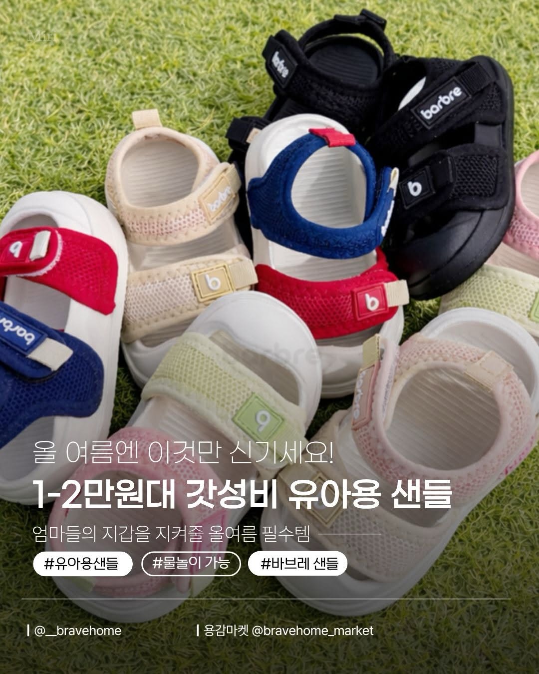 [일단 저장✅] 🏷️ 바브레 아기 샌들 초특가 링크 오픈 ✨️ 비싼 신발 대신 1-2만원대 갓성비 아기샌들‼️ 🌞 갑자기 더워진 날씨! 여름 준비 지금부터 시작해야해요. 🎁 [구매 인증 EVENT] 아이스 아메리카노 쏩니다!🧊☕ 구매 후 오픈 피드 or 예고 영상에 ’구매완료 + 휴대폰 뒷 네자리‘ 댓글 남겨주시면 추첨을 통해 3분께 시원한 아이스 아메리카노를 보내드려요! (공구 종료 후 2주 이내 발송) 비싼 몇만원대 아기 샌들. 한철만 신기고 못신기신 엄마들‼️‼️ 요건 어때요...? 가격은 1-2만원대로 정말 착한데 디자인은 너무 귀엽고 색상 예쁘고 가벼운데다가 신기기도 편해요 :) 물놀이, 모래놀이 등 휘뚜루 마뚜루 잘 신길 수 있으실 거에요! ✅️ 바브레 매쉬 에어핏 샌들 (앞코 뚫린 구조) 시원하고 가볍게! 데일리로 딱인 매쉬 썸머 슈즈 컬러: 아이보리, 초코, 블랙 ✅️ 바브레 매쉬 쿨핏 샌들 (앞코 막힌 구조) 스포티하면서 가볍고 데일리로 딱인 메쉬 썸머 슈즈 컬러: 핑크, 베이지, 블루, 블랙 🤿 물놀이부터 데일리까지 가능한 가성비 유아 여름 샌들, 매쉬 소재로 시원하고 벨크로 타입으로 편한 유아 샌들. 1~2만원대로 부담 없이 준비하는 여름 필수템! 용감이네에서 1회 한정 무료 교환 / 반품 가능하니 이번 기회 놓치지마세요🏖❤️ 📅 공구 일정 4/24(금) 10:00 ~ 4/28(화) 단 5일간 진행✔️ 💕 놓치면 정말 후회할 최저가 공구!💕 (준비된 수량 소진 시 조기 마감될 수 있습니다.) 📢 공구 링크를 가장 빠르게 받고 싶다면? 1️⃣ @__bravehome @bravehome_market 팔로우 & 이 게시물 좋아요 & 저장 필수! 2️⃣ 댓글로 [ 용감 ] 남겨주시면 최저가 공구 링크를 DM으로 보내드릴게요! 💡 꿀팁: 팔로우 & 저장을 해두시면 다음 특가 공구 알림도 놓치지 않아요!