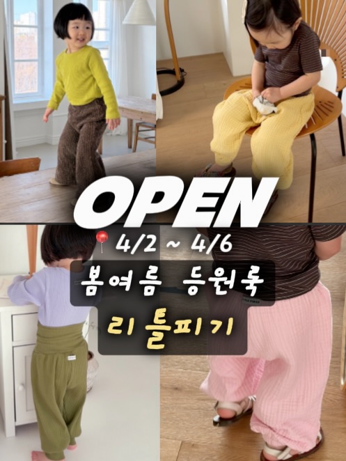 🐥갓성비 봄여름 등원룩 리틀피기 #공구오픈 [코디]남겨주시면 최저가 링크 디엠 드려요! 프로필 링크에서도 구매가능 💘 📆 일정 : 4/2(목) ~4/6(월) 매일 등원룩 코디하기 은근 신경쓰이는데 이것만 입히면 엄마들이 어디거냐고 다 물어보더라구요! 🌸리틀피기 봄여름 라인 센스있는 부츠컷에 배앓이방지 알라딘핏, 여름신상 고쟁이바지까지~! 너무 귀엽고 이쁘죠? 국내생산에 퀄 좋고 건조기 막돌려도 끄떡없는데 아니 이게 전부 일이만원대라구요?? 😳 봄여름 등원룩 고민하지말고 그냥 여기서 끝내세요! ✅ 국내생산, KC인증 ✅ 건조기 돌려도 쫀쫀유지 ✅ 부츠컷,알라딘핏,고쟁이 ✅ 실내복/외출복 모두가능 ✅ 귀염뽀짝 색감과 디자인 👚참고 사이즈 TIP 8개월차 도담이는 키 70cm/몸무게 9kg 👉 XS 입었는데 살짝 여유롭게 잘 맞아요 :) 키 65cm ~ 75cm / 몸무게~10kg 👉 XS 키 75cm ~ 85cm / 몸무게~13kg 👉 S 키 85cm ~ 95cm / 몸무게~16kg 👉 M 키 95cm ~ 105cm / 몸무게~20kg 👉 L 🎁구매인증 이벤트 각 오픈피드 댓글 ‘구매완료+폰 뒷 4자리’ 👉 네이버 5000 페이백 💚 #육아 #등원룩 #리틀피기 #아기옷