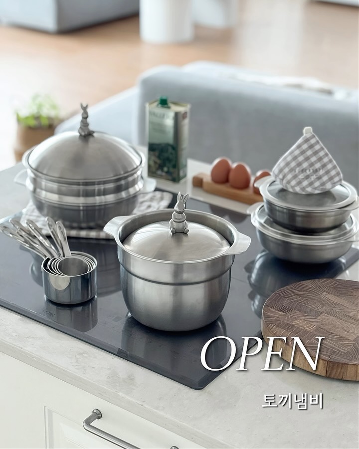 귀여운 토끼 디자인의 다기능 냄비로, 솥밥, 찌개, 국, 찜기까지 한 번에 해결할 수 있어 주방을 간편하게 만들어줍니다. 통5중 스텐으로 열전도율이 높고 눌어붙음이 적어 요리 스트레스를 줄여줍니다.