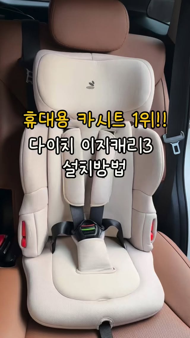 휴대용 카시트 다이치 이지캐리3는 아이들이 편하게 앉을 수 있는 구조로, 안전벨트로 쉽게 설치 가능하며, 약 4.7kg으로 가벼워 이동이 용이합니다. 7세까지 사용 가능.