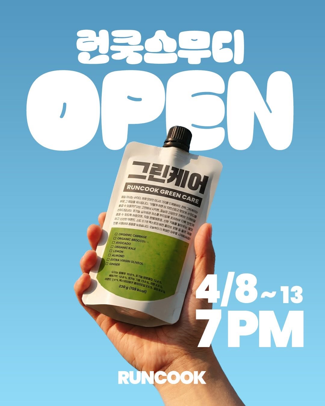 #구매완료이벤트 구매완료 댓글로 남겨주세요 20분께 네이버 5000포인트 보내드려요! ⭕️30개 골라담기 옵션 새로 구성 👉🏻5개 단위로 원하시는대로 고를수 있습니다 (예)비트핏10+그린케어5+그린핏15 👉🏻기존 공구가 보다 추가 할인 ⭕️2달만에 정기구독 신청받아요 공구가에서 추가 7% 할인 물량부족으로 많이는 못받고있어요 꾸준히 드시는 분들은 정기구독 추천드려요 🔺옵션 2가지 라인 4가지맛입니다. ✔️케어 스무디-1종 ✔️핏 스무디-3종 케어 스무디는 단맛이 없어요. 갈아마시면 당이 오를까봐 걱정이신분들도 안심하고 드실 수 있고 생아몬드를 물에 씻고 12시간 불려 껍질 벗기고 직접 저온로스팅후 바로 갈아만든 아몬드버터가 들어갑니다. 영양적으로도 완벽해서 딱 1팩만 드셔도 식사 대체 가능하고 견과류 신선도, 산패에 불안감 있는 분들도 안심하고 드실 수 있습니다 핏 스무디는 채소뿐 아니라 과일이 들어가 누구나 맛있게 먹을수있어요 하루에 필요한 채소,과일을 맛있게 먹고 싶은분들께 추천!! (먹는 방법) 🔺채소섭취가 부족하고 가공식품,배달음식 많이 드시면 하루 1팩으로 영양보충 🔺다이어트 제가 한달간 5kg 감량하며 쓴 방법 저녁은 꼭 스무디 하나만 먹었고 아침에는 평소 먹는 루틴만 해도 배가 불러서 스무디는 먹기도 하고 생략도 했어요 하루 1-2팩 정도 먹기 아침- 올리브오일,마누카,스무디 점심- 일반식 (먹고싶은걸로 마음껏) 저녁- 스무디,삶은 달걀 🔺식욕조절 어려우신분 스무디 1팩 드시고 10-20분 텀 두시고 식사하세요 신기하게 많이 안들어가요 런쿡 스무디 자체가 포만감이 크기도하고 4종 모두 1팩당 엑스트라버진 올리브오일 1스푼이 들어가서 식욕억제에 도움을 줍니다. 🔺단기간 클렌즈, 체중감량 원하시면 3일 또는 5일 정도 3끼 모두 스무디로 드세요 죽이나 스프정도의 농도라 숟가락으로 떠서 천천히 씹어 드세요. 클렌즈후엔 천천히 일반식 + 스무디로 일상으로 돌아오시면 되어요 (4가지맛) ▪️그린케어 (230ml) 설포라판이 풍부한 국내산 유기농 브로콜리, 양배추, 케일등 해독에 도움주는 십자화과 채소를 각각 쪘고 단백질,불포화지방산이 풍부한 아보카도, 아몬드버터, 엑스트라버진 올리브오일을 넣어 갈았어요. 1팩만으로 식사로 충분한 포만감✔️ 음식으로 먹는 진정한 글루타치온✔️ 생강을 넣어 속이 차가워지지 않게 보완✔️ 갈아드셔도 당이 오르지 않아요✔️ 🔺당 관리 하시는 분들 추천 🔺채소 섭취가 아예 없거나 부족하신분들 추천 🔺다이어트시 식사대용 추천 ▪️그린핏 스무디 (230ml) 십자화과 채소와 레몬,엑스트라버진 올리브오일,사과,파인애플, 코코넛워터를 넣어 새콤달콤한 맛 영유아, 어린이도 잘 먹어요 🔺스무디 클렌즈 처음 시도하시는 분들께 추천드려요 ▪️비트핏 스무디 (230ml) 비트의 흙맛을 없애기 위해 전처리 과정과 찌는 시간에 공을 많이 들였어요 블루베리, 양배추, 레몬, 파인애플, 엑스트라버진 올리브오일을 넣어 혈액순환, 해독, 내장지방 배출, 배변활동에 도움 🔺달지않고 맛있어서 누구나 즐길수 있는 맛 🔺포만감 굉장히 커서 한끼식사로 추천 ▪️cca 핏 스무디 유기농 구좌당근, 양배추를 잘 쪄서 사과,레몬,파인애플,엑스트라버진 올리브오일과 함께 갈았어요. 소화에 도움, 식이섬유가 풍부해 배변활동에 도움 🔺 달지않고 맛있어서 누구나 즐길수 있는 맛 🔺포만감 굉장히 커서 한끼식사로 추천 오늘밤 8시에 만나요🙌🏻