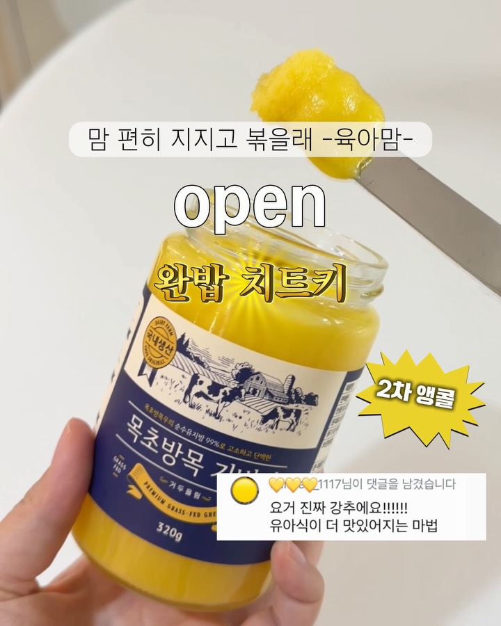 내일 오전 10시 거두올림 기버터 2차 ✅ 댓글로 [ 핫딜 ] 남겨주시면 특가 링크 보내드릴게요! ⚡️ 매주, 매달 가장 최근에 생산된 신선한 기버터로 보내드려요 🧈 ⚡️ 준비된 물량이 소진되면 조기 마감됩니다 ‼️ 고온에 쉽게 타버리는 식용유는 그만❌ ‼️ 산화되며 나오는 유해물질은 이제 NO NO.. ‼️ 드디어 국내 제조 기버터가 왔다 1차 때 유아식에 써보시고 신세계를 맛보셨다라는 분이 넘치고 넘쳐.. 2차 앵콜까지 오게 되었습니다 !! 🤭♥️♥️ 우선 풍미 확! 올라가니까 거들떠도 안보던 메뉴까지 먹게 된다니까요 ?! ⋯⋯⋯⋯⋯⋯⋯⋯⋯⋯⋯⋯ 🎁 절대 놓치면 안되는 구매완료 이벤트 “구매완료+연락처 맨 뒤 4자리“ 남겨주세요 1️⃣ 5,000원 현금 페이백 해드릴게요 (5명) 2️⃣ 기버터 한 병씩 더 드립니다!!!!! (2명) 최종 체감가가 얼마야 ...!! 😚 ⋯⋯⋯⋯⋯⋯⋯⋯⋯⋯⋯⋯ ✅ 아니, 기버터가 뭔데?! 일반 버터에서 수분, 유당, 유청을 제거한 정제 버터로 발연점이 250도로 고온 조리 ( 볶음, 튀김 등)에 적합한 순수 정제버터! 👉🏻 고로 !! 유아식 만들 때 볶음 요리, 튀김 요리 등 높은 열에 조리할 땐 고온에도 강해 지방 구조 안깨지고 요리의 맛은 더 높여주는 풍미까지! 자자, 한가지 더 알려드리자면 !! ⭐️영양 흡수를 높이는 현명한 활용법 대공개⭐️ 채소와 과일 구울 때 !!! 요 기버터 사용해보세요 요 안의 영양소들은 대부분 지용성이거든요? 👉🏻지방과 함께 먹어야 제대로 흡수가 된다는 거죠 기버터 한 조각이 < 영양소를 끌어내는 열쇠가 된다는 사실!!> ❗️퓨어한 기버터는 장 점막을 회복시키고 염증을 낮춰주는 부티르산이 들어있어 인도에서는 약으로 쓰이기도 한대요❗️ ⋯⋯⋯⋯⋯⋯⋯⋯⋯⋯⋯⋯ 🧈 거두올림 기버터 스펙 ! ✅ 자연방목 무항생제 원유로 한국에서 제조 👉🏻 수입산은 하절기 평균 65도가 넘는 기온에 녹았다 굳었다를 반복하면서 들어옴 주의!!!!!! ✅ 청정 뉴질랜드 공동인증 안심 원유 사용 ✅ 유당불내증이 있어도 편하게 섭취하세요! ✅ 상온 보관 가능 (한여름은 냉장) ✅ 오메가 3, 오메가 9 풍부 ✅ 지용성 비타민 A, E, K 풍부 같은 스펙 제품 대비 무려 40%나 저렴해서 런칭하자마자 인기가 많은 제품이에요 👍🏼 😎 키포인트 추가추가!!!!!! 수입으로 떼오는 완제품과 달리 뉴질랜드산 원유를 한국으로 가져와서 정말 오랜 시간 정제해 만든거라 완전 신선하게 받아 드셔보실 수 있어요 👍🏼 ⋯⋯⋯⋯⋯⋯⋯⋯⋯⋯⋯⋯ 📅 일정 4/9(목)~ 4/12(일) 📍거두올림 기버터 구성 320g 1병 13,900원 추천⭐️) 320g 2병 27,500원 추천⭐️) 320g 4병 53,900원 * 4인 가족 이상이면 4병 추천드려요 생각보다 요리조리 잘 쓰여서 소진이 금방이네요 .. 🤭💦 유통기한 : 제조일로부터 18개월 🚛 배송비 3,000원 낮 12시 이전 주문 시 당일 배송이나 주문 폭주 시 1~2일 지연될 수 있습니다!