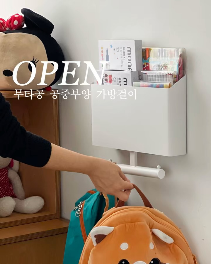 💛 무타공 공중부양 가방걸이 공구예고 다녀왔습니다~‘하고 바닥에 툭! 내팽겨쳐진 아이 가방 스스로 걸어놓을수 있는 정리템 어떠세요?! 아이 키우는 집이라면 다들 공감하실 거에요 가방을 아무 데나 두고 찾을 때마다 한 번씩 뒤집어보게 되는 상황 이건 아이가 스스로 가방을 걸어둘 수 있게 만든 제품이라 정리 습관 잡아주기에도 좋고요 벽에 못 박을 필요 없이 그대로 걸어서 사용하는 구조라 설치도 부담 없이 가능해요✨ 철제 소재라 최대 5kg까지 걸 수 있어서 유치원 가방부터 책가방까지 안정적으로 사용 가능하고요 단순히 거는 용도만이 아니라 위쪽 공간까지 같이 활용할 수 있어서 수납까지 한 번에 해결되는 구조에요 아이 방, 현관, 거실까지 여러 공간에서 활용 가능해서 생각보다 쓰임도 다양해서 공구 준비했어요😀 🔔빠른구매 원하시면 흔적 남겨주세요 좋아요❤️로 알림 드릴게요 :)