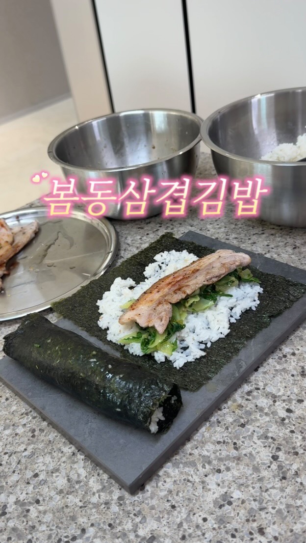 봄동 막차 탑승〰️🚂💫 봄동 이렇게 드셔보세요!🥬 봄동 된장에 조물조물 무쳐서 삼겹살 하나만 따악 구워서 말아주면 지인짜 JMT💕 거창한 재료 안들어가도 봄동과 삼겹살이 콜라보를 이루면서 🎶 앉은자리에서 세 줄은 그냥 순삭 해버리는 레시피에요•🐽• - ✔️봄동삼겹김밥 🥣봄동무침 * 된장 1T * 가루육수 1포(훈연멸치맛) * 다진마늘 0.5T * 매실청 0.5T * 참기름 한 바퀴 * 통깨 톡톡 👉🏻봄동 깨끗하게 손질해 믹싱볼에 식초1T 담고 깨끗히 세척 해줍니다 👉🏻봄동 끓는물에 소금 1T 넣고 딱 3분만 데쳐요 👉🏻채망에 헹구고 봄동 물기 꽉 짜주세요 👉🏻삼겹살 구워둡니다 👉🏻밥에 참기름 통깨 넣고 섞어둘게요 👉🏻김 - 밥 - 봄동무침 - 삼겹살 올려 말아주세요 📌1T는 보통 아빠숟가락 기준입니다 🥄 - 🔛영상 속 평생쓰는✨ 에버스텐 🔛믹싱볼 + 채망 + 뚜껑 = 1set 🔛최저가 공구 중👉🏻프로필링크‼️ ✔️🥬봄동 헹구는 채망 - <중>사이즈 ✔️🥬봄동 무치는 믹싱볼 - <중>사이즈 ✔️🍚밥 버무리는 믹싱볼 - <대>사이즈