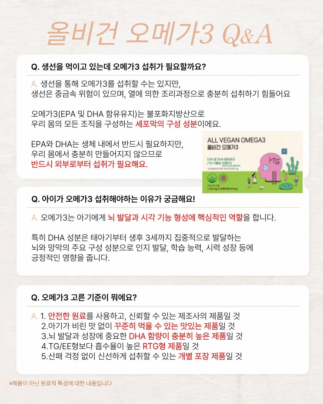 올비건 오메가3는 인기 폭발 중인 제품으로, 10박스와 20박스 주문이 많습니다. 자주하는 질문과 후기들이 정리되어 있어 구매에 도움이 됩니다.