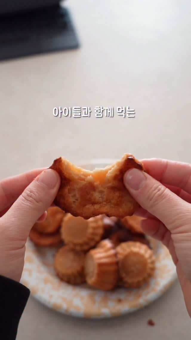 버터떡🧈 버터떡이 알고리즘에 자꾸 보이길래 설탕은 조금 줄이고 아이들과 함께 먹는 심심한 버전으로 만들어봤어요 겉은 바삭하고 속은 쫜득한게 입이 심심할 때 자꼬 들어가서 문제에요🤭 - #버터떡 버터 30g 우유 180g 계란 한 알 원당 30g 찹쌀가루 120g 타피오카전분 50g <만드는법> 1. 우유+버터는 전자렌지에 1분동안 데워서 준비하고 2. 원당에 계란을 먼저 풀어준다 3. 데워둔 우유 천천히 부어가며 섞어주고 4. 찹쌀가루 + 타피오카 전분을 채반에 걸러 반죽한다 모든 재료 머핀틀에 담아 ✔️에어프라이어 200도 10분 + 180도 5분 머피틀 크기에 따라 시간을 늘려주세요! 좀 더 달게 만들고 싶다면 설탕 추가하기 연유 넣으면 사실 더 맛있어요!🤭 📌5세대 오넬리 스팀 에어프라이어 공구 중!