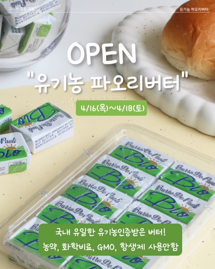 “링크” 적어주시면 최저가 핫딜링크 보내드려요! [파오리 무염 유기농 버터 최저가 공동구매 오픈🧈] 🔔공동구매 오픈 시각 4/16 목요일 오늘 오전 10시 오픈! 🎁알림 추첨 이벤트 -파오리유기농 버터 10개 (3명) 참여방법: 팔로우 하고 알림 적어주세요. -네이버페이 5천원권 (10명) 참여방법: 구매 후 구매완료+전화번호 뒷자리 적어주세요! 안녕하세요. 구아카입니다.😍 오늘 오전 10시에 많이 기다리셨던 국내유일 100% 유기농 우유로 만든 파오리 유기농 버터오픈해요! 댓글이 총 2천개정도 달려서 구매 원하시는 분은 먼저 하시길 바래요. 100% 유기농 우유에 농약, 화학비료, 항생제, GMO ❌ 없으니 아이들과 드시기도 좋고 리뷰보면 아시겠지만 우유처럼 신선하고 고소한 맛이에요. 🐮🥛 이거 드셔보시곤 비싼 버터 말고 유기농에 가격 적당한 파오리버터로 갈아타시는 분들도 많더라고요. 이번 공구는 컬리보다 8700원 저렴하게 공구하니 이번기회에 꼭 득템하시길 바래요.😘 ✅파오리 유기농 버터 -전성분이 유기농 우유 100% 🐮 -국내유일한 유기농버터는 파오리에요! -유기농 인증서 : 유로리프(Euro Leaf), 이탈리아 유기농 협회 받음 -농약, 화학비료, 항생제, GMO 없는 버터! -한 번 쓰기 좋은 12.5g 소분되어 있어 편리함 -고소하고 신선한 우유맛으로 풍미 가득함🥛 -무염 버터로 다양하게 사용하기 좋아요! -70년 이상 역사를 가진 이탈리아 🇮🇹 천연버터에요. 📆공동구매 날짜 : 4/13일(월) ~ 4월 15일(수) 📦상품리스트 및 가격 1)파오리 유기농버터 40개 → 28,900원 2)파오리 유기농버터 80개 → 56,900원 배송비 4천원 해도 컬리보다 8700원 더 싸요! 80개가 가장 할인율 좋아요👍🏻 📌유통기한: 2026년 10월 19일(냉장기준) -냉장보관 시 10월 19일내에 드시고 냉동보관시 여기서 6개월 연장 돼요. -공구 전에 갓 만든 가장 신선한 유기농 버터로 보내드려요. ▫️가격비교 -컬리는 10개에 9,400원 / 40개면 37,600원 -이번 공구는 40개에 28,900원✨ 결론은 8700원 더 저렴해요! -라꽁비에뜨보단 30% 저렴해요. 🛒구매방법: 프로필 상단의 링크를 클릭 후 사진 클릭하면 구매페이지로 이동! #버터 #버터추천 #유기농버터 #유기농 #꿀템