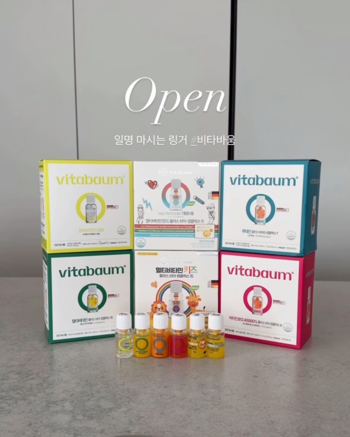 잠시후10시‼️ #선착순이벤트 🎁 선착순 50명 : 비타민B12 1병 증정 🎁 60병 이상 선착순 10명 : 멀티(12병입) 1박스 증정 🎁 구매인증 30명 : 신세계상품권 1만원권 증정 *이벤트 중복 당첨가능 ! - 벌써 5차진행중인 비타바움! 5인가족인 저희집은 하루에 5개씩,,ㅎㅎ 한달이면 150개가 뚝딱이라^^ 조금이라도 저렴하게 사기위해 사심담아 진행하는 비타바움입니다 🙈 한박스도 채 안남아서 얼른 쟁여야해요 애셋 키우며 좋다는거 이것저것 진짜 많이 먹여봤지만 다 실패하고 ‼️ 드디어 정착해 2년째 먹이고 있는 비타바움 ‼️ 마시는 링거라고 불릴만큼 효과가 직빵이라 엄마들 사이에 이미 유명한 제품이예요 아이부터 학생, 임산부, 성인, 부모님까지 이것저것 챙겨먹기 힘들때 비타바움 한병이면 끝입니다 👩🏻 성인 : 멀티비타민(만12세이상) / B12 👦🏻 만 3-11세 : 키즈 🧑🏻 만 12세-18세 : 틴즈 (청소년) 👵🏻 부모님 : max D 추천 ! - ✅ 비타바움에 정착한 이유 ⭕️ 원료가 독보적 ! 비타민에 관심있다? 하시는 분들이라면 무조건 알고계실정도로 유명한 DSM 사의 퀄리인증원료 ! 게다가 100% 독일생산! ⭕️ 액상형이라 섭취가 편해요 물 없어도 먹기 편하고, 외출시 들고 나가기도 간편해 알약먹을때 특유의 약맛이 없습니다 ⭕️ 알약대비 흡수속도 최대 9배 섭취후 5분이내에 흡수가 완료될정도로 흡수속도가 빨라요 먹자마자 효과를 바로 느낄 수 있어 ‘ 마시는 링거’ 라는 별명이 붙은 이유! ⭕️ 투챔버시스템으로 빛과 공기에 취약한 비타민을 안전하게 보관해 영양소파괴없이 신선하게 섭취할 수 있어요 ⭕️ 첨가물, 부형제 등 무려 12가지 무첨가라 온가족 안심하고 섭취가능 독일에서 직접 생산하고 마감 스티커까지 ! 완제품으로 한국에 직수입되는 국내시장 최초 투챔버 방식의 영양제로 빛과 공기에 취약한 비타민을 밀봉하여 온전하게 보관하다 먹기직전 뚜껑을 돌리면 비타민 가루가 떨어지면서 미네랄용액과 혼합되어 신선하게 섭취할 수 있다는게 가장 큰 장점이예요 ⭐️ 그 어떤 첨가물없이 120년 역사 DSM 프리미엄 퀄리블랜드 인증받은 원료사용 ! 당류 또한 제로 🚫 - 💙 키즈비타민 (만 3세-11세) 완전 추천 (강력추천⭐️) 일단 애들이 잘먹어요! 일명 사자쥬스 🦁 성장에 필요한 모든 비타민이 함유되어있어 특히 VitD,K 까지 들어있어 여러가지 챙길필요없이 이거하나면 끝! 구미형비타민은 당류 걱정에 망설이고 가루는 목에 걸려 켁켁 거리고 알약은 삼키기도 힘들어할뿐더러 비타민 산패가 쉽게 일어납니다 🚫 돌려서 가루가 떨어지는게 재밌는지 초등 두아들은 이것때문에 스스로 챙겨먹는거같고 ㅎㅎ 막내는 맛있어서 사자쥬스 먹기만을 기다릴정도 😂 💜 틴즈 : 청소년 (만 12-18세) 청소년용 맞춤으로 나온 신제품 ✨ 첫째는 이제 초6이라 틴즈로 먹어요 💚 성인 멀티비타민 : 면역 (12세이상) 온가족 데일리비타민 건강, 면역에 필요한 권장량을 1일 1병으로 섭취 🩷 비타민 B12 : 활력 (강력추천⭐️) B군 8종이 100% 이상 함유 피로회복과 에너지충전 앰플 : 근육통, 불면증, 숙취, 만성피로, 무기력증, 집중력 강화를 원하는 수험생 추천 ! 💛 퓨어비타민 C 그 유명한 DSM사의 영국산 비타민 C 원료! 항산화, 노화방지, 피부탄력을 도와줘 여성분들께 추천! 🧡 Max D maxD는 부모님께 선물드리기 딱이예요! ❤️ 루테인 눈 건강을 위해 하루한명 꼭! 챙겨먹어주세요 - 딱! 한번 먹어보면 아.. 하고 납득할 제품력 ! 우리가족 건강, 비타바움으로 단단히 챙겨보아요 💪🏻