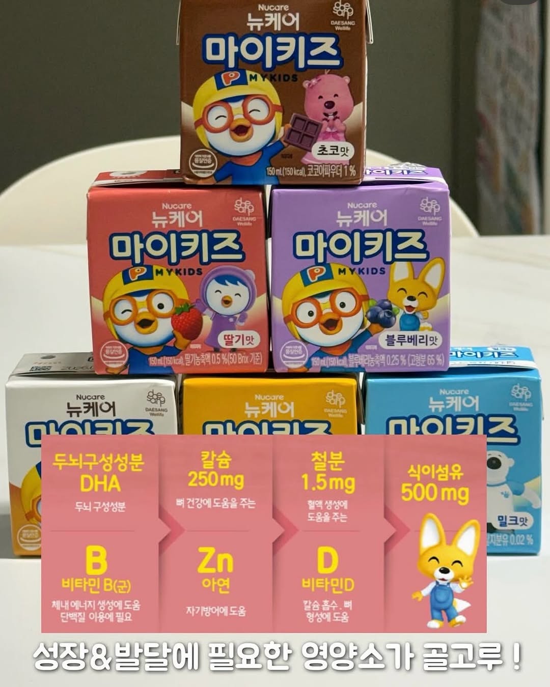 성장기 아이 맞춤 영양설계로 DHA, 칼슘, 아연, 비타민D, 철분이 골고루 포함된 150ml 팩으로 간편하게 챙길 수 있는 제품입니다. 6가지 맛으로 선택 가능하며, 특히 저당고소맛은 단맛 부담이 적어 아이들 입문용으로 추천합니다.