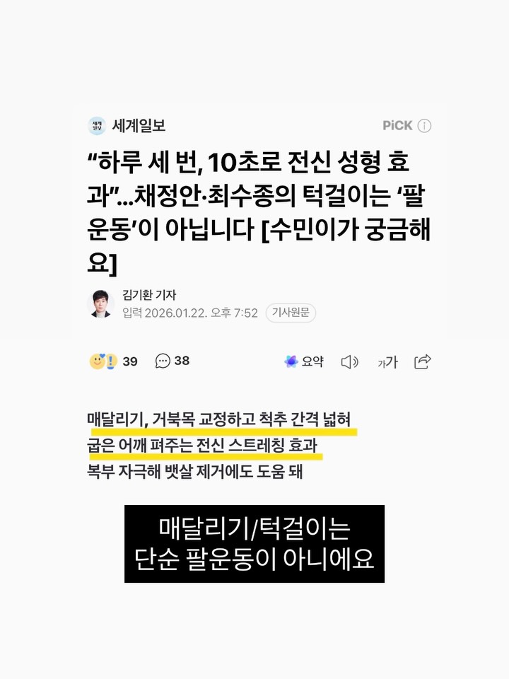 [슈로스도어 공구중] 기사를 찾아보니까 매달리기 같은 단순한 운동만으로도 척추를 펴주고 전신 스트레칭 효과가 있다고 하더라구요. ✔ 척추 간격 넓혀주고 ✔ 굽은 어깨 펴주고 ✔ 거북목 예방까지 단순히 “운동”이 아니라 몸을 바로 잡아주는 움직임이라고 해요👍🏻👍🏻 — 특히 중요한 건 이거‼️ 👉 하루 10~15초, 3번만 해도 충분하다는거 .ᐟ 이렇게 짧은 시간으로도 척추 피로를 풀어주고 몸 균형을 잡는 데 도움이 된다고 해요 .ᐟ — 생각해보면 요즘 아이들 하루 대부분이 ✔ 앉아있기 ✔ 구부정한 자세 ✔ 화면 보는 시간 이게 반복되잖아요. 그래서 더더욱 몸을 ‘펴주는 자극’이 필요하다고 느꼈어요 — 그리고 이건 아이만 좋은 게 아닙니다 .ᐟ .ᐟ 저는 온가족용으로 추천드리는거에요 .ᐟ .ᐟ 매달리기 운동은 ✔ 상체 근력 ✔ 코어 근육 ✔ 자세 교정 ✔ 혈액순환 까지 도움된다고 해서 요즘은 저랑 남편도 지나다니면서 한 번씩 매달려요. — 아이들은 놀며 자연스럽게 운동되고 부모님도 같이 운동하고 집 안에서 자연스럽게 몸을 쓰게 되는 구조 진짜 강력추천 안드릴 수가 없습니닷 슈로스도어 공구는 이번주 금요일 3월 20일 마감되어요❤️