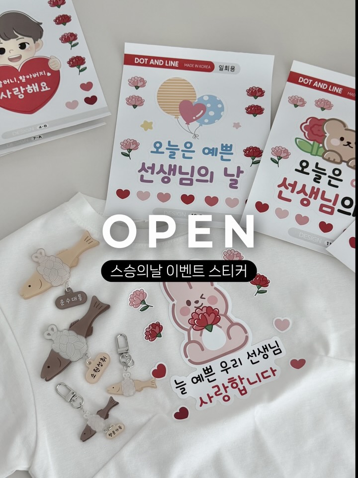 🌺 이벤트 스티커 & 액막이 명태 💌 댓글로 [ 링크 ] 남겨주시면 최저가 링크 디엠 보내드릴께요 이거 작년에 선생님께 이벤트 해드렸는데 너무 좋아해주셨거든요 ! ❤️ 올해도 준비해야죠 :) 요즘 어린이집, 유치원 선물 안 받는곳 많더라구요 ! 근데 또 그냥 넘어가기는 섭섭하고 그럴때 이런 의류스티커 너무 좋은것같아요 엄마도 부담없고 받으시는 선생님들도 기분 좋고 센스있는 선물이 될꺼에요 :) 그냥 스티커로 아이 옷에 붙여주기만 하면 끝이에요 제거할때도 찐득거림없이 깔끔하게 잘 제거되구요 무엇보다 요런 스티커 디자인중에서 제일 퀄리티 좋고 예쁜걸로 골랐어요!!! 스승의날과 어버이날 두가지 테마고 디자인, 멘트 다양하게 준비되어있어요 그리고 함께 하면 좋은 액막이명태도 준비했어용 ❤️ 예전부터 나쁜 기운을 막는 행운을 상징하는 명태를 귀여운 아크릴로 만들었어용 :) 키링, 마그넷 두가지 타입으로 마그넷은 현관에, 키링은 차키나 차에 두어도 너무 귀엽더라구용 행운을 주는 요런 선물도 좋을것같아서 함께 준비했어용 ♥️ 5월 행사 앞두고 미리미리 준비하세요! 📍 공구기간 : 4월 15일부터 4월 19일까지 🎀 지금바로 프로필 링크에서 구매 가능합니다 !