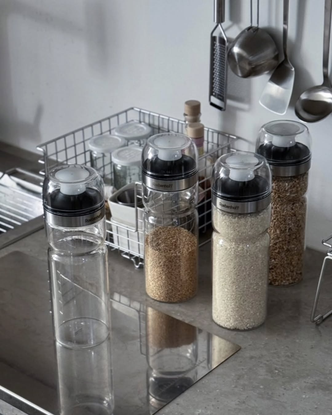 [💙레벤호프 잡곡통] 드디어 찾았어요 미세플라스틱 때문에 쌀 잡곡 보관 불안했는데 내열유리로 변형없이 평생 쓰고 주방을 깔끔 하고 심플하게 정리할 수 있어요 입구가 넓어 옮겨 담기 쉽고 채반도 걸칠 수 있어 뜨거운 육수 담기 너무 편해요 뚜껑 닫아 냉장 보관하면 필요할 때 마다 요것만 꺼내서 쏙 실리콘 입구라 옆으로 흐르지 않아 깔끔하고 유리라 내용물 한눈에 보여 편해요 뚜껑 뒤집어 담아주면 깔대기처럼 옆으로 흐르지 않고 홈이 있어 그립감이 좋아 한손으로 사용하기 편리 뚜껑은 계량컵으로 사용 하면 되요 입구가 말랑말랑한 실리콘이라 깔끔하고 밀폐력 걱정없어 흔들어도 샐 걱정 없어요 원터치로 쉽게 분리되니 세척도 편하고 식세기도 ok 쌀부터 잡곡, 육수까지 다양하게 활용하는 레벤호프 잡곡통 지니에서 만나보세요 💟공구일시 : 4/20 - 4/25(단 5일간) 💙지니하우스 프로필 링크를 확인해주세요