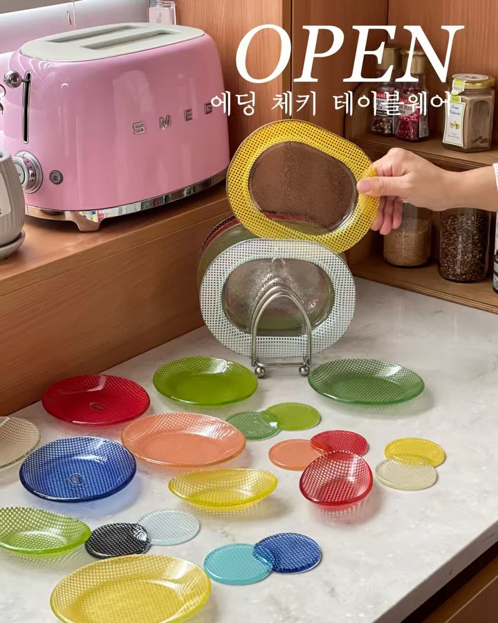 💛 에딩 체키 테이블웨어 공구예고 100% 핸드메이드의 퀄리티에 컬러감까지 화사하게 테이블을 바꿔줄 에딩 체키 테이블웨어 준비했어요💚 집밥 먹을 때 식탁 분위기 아쉬웠던 적 있으셨죠😅 매일 같은 그릇에 담다 보면 괜히 더 밋밋하게 느껴지고요 그래서 분위기 좀 바꿔보고 싶을 때 가장 쉬운 방법이 그릇 바꾸기더라구요 에딩 체키 테이블웨어는 빈티지하면서도 클래식한 무드에 트렌디한 컬러감이 더해진 스타일이라 대충 담아도 플레이팅이 자연스럽게 완성되는 느낌이에요🤍 빛에 따라 컬러감이 달라져서 식탁이 훨씬 생기 있어 보이고요 ✨ 유리 겉이 아니라 유리와 유리 사이에 프린팅된 구조라 여러 번 세척해도 벗겨질 걱정 없이 오래 쓸 수 있고요 전자레인지, 식세기까지 가능해서 실사용도 편한 편이에요 쉐입도 다양하고 컬러도 많아서 취향대로 고르는 재미도 있고요 😍 식탁 분위기 바꾸고 싶으셨던 분들 이번 공구는 꼭 눈여겨보셔도 좋아요✨ 🔔빠른구매 원하시면 흔적 남겨주세요 좋아요❤️로 알림 드릴게요 :)