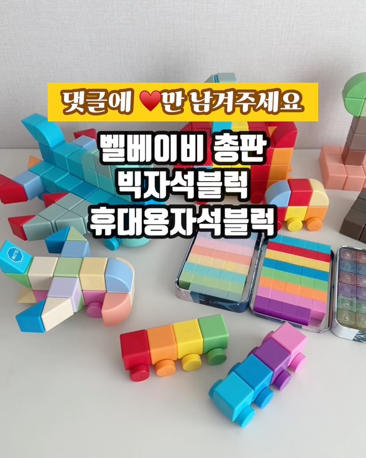 🍊#댓글에하트남겨주세요 #벨베이비총판 댓글에 ❤️하트 남겨주시면 원하시는 제품 보내드릴게요 이제 단 🔥8시간 남았어요! 신학기 시즌에 마지막 💥최저가 세트구성부터 💥오픈런으로 드리는 혜택이니 놓치지 마세요! 📣26년 3월 19일 오후 10시 오픈 피드아래 공지채널 참여하시면 빠르게 알람소식을 받으실 수 있어요!! —————————————————— 💟우리의 벨베이비! 이번 시즌 구성은 다른 시즌과 다르게 할인율은 더 더하고 빅블럭과 미니블럭 모두 총판으로 가져오게 됐어요👀 💟반신반의 하면서 이전에 구매하셨던 분들은 오늘이 기회이니 세트구성 또는 단품구성으로 원하시는 세트만큼 구매하고 오픈런 사은품도 꼬옥 받아가세요! ⭐️ 오픈런 단품구매 100명 ➡️ 스프링볼1개씩증정 ⭐️ 오픈런 풀세트구매 30명 ▶️ 미니자석블럭랜덤증정 (두 오픈런은 중복 적용이 가능합니다) ⭐️ 구매인증시 ▶️ 휴대용자석블럭 택1 (5명) 🌈 구매대별 무조건 드리는 이벤트 안내 ⚡️자석블럭 구입 개수 만큼 드리는 혜택⚡️ ✔️ 5세트 구매시 ➡️ 원형보관함 M증정 ✔️ 7세트 구매시 ➡️ 원형보관함 L증정 ✔️ 10세트 구매시 ➡️ 원형보관함 XL증정 ✔️ 12세트 구매시 ➡️ 드로잉패드(6.5)+원형보관함(XL) 증정 ⚠️벨베이비는 역시나 다다익선✔️ 이 답이에요‼️ 💟또니맘이 보여드린 미끄럼틀, 주차타워, 피아노 등등을 만들어보시려면 ⚡️10-14세트정도로 있어야 재밌게 노실 수 있어요 !!!!! ( 다 더해도 다른 타사 브랜드보다 싸다싸다 ) 🟨 8-10세트 +🔺4세트 + 🟣 3세트 + 🛞 3세트 💕 또한 ✅ 큰 특징중 하나‼️ ➡ 타사브랜드 세모는 3면만 붙지만 벨베이비 🔺세모블럭, 🔵원형블럭은 ✅5면이 모두 다 붙은다는점🔥 💟이번 기회에 벨베이비 빅블럭 그리고 미니블럭은 2-3세트 사서 휴대할 때에도 챙겨가시면 베스트! ✔️오늘 밤 10시에 우리 다시 만나요!👋🏻 @bellebaby_babygoods X @seohui_jeong