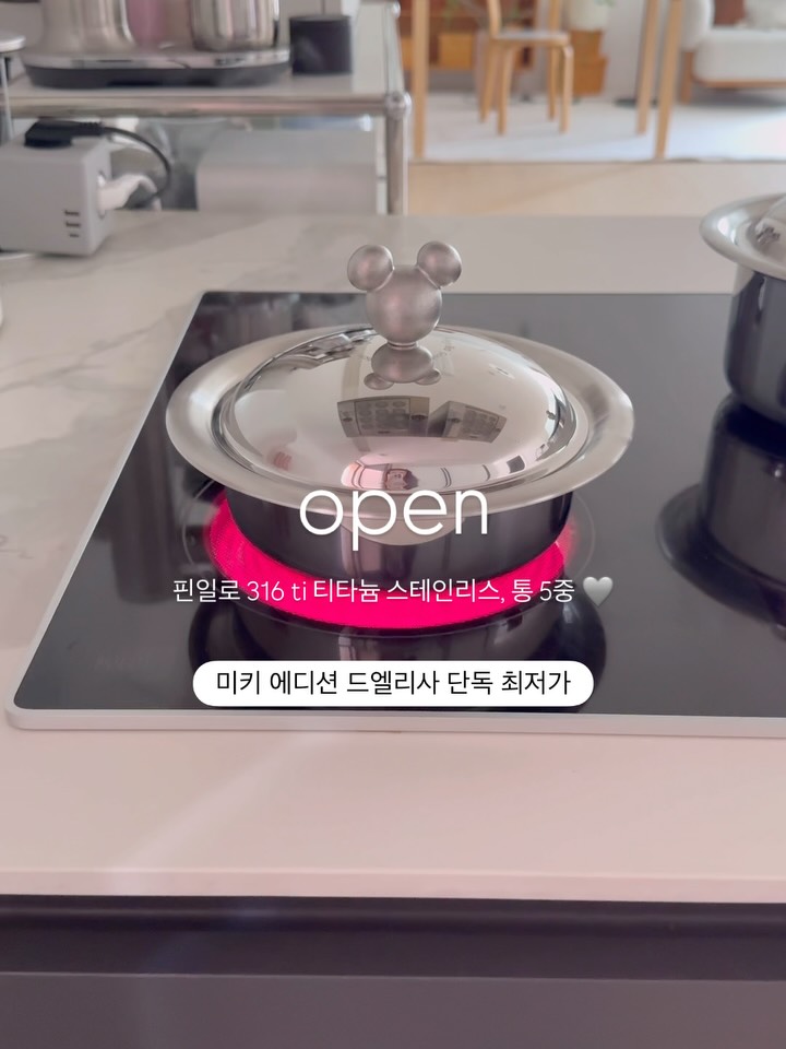잠시후 10시 #오픈 #선착순이벤트 #구매완료이벤트 ✨ 핀일로 10주년 기념 한정판 핀일로 316Ti 미키 라이스팟을 드엘리사 채널에서만 단독 최저가를 진행합니다! 🐭 디즈니 덕후 모여랏 🖤👋🏻 📍공구기간 : 3/23(월)~26(목) 📍진행제품 : 핀일로 10주년 미키에디션 🎁 단독 EVENT 🎁 1️⃣ 선착순 100명 한정 이벤트 구매해주시는 선착순 100분께 미키 주방장갑을 선물로 보내드립니다. (색상 랜덤) 2️⃣ 구매인증 이벤트 댓글로 구매완료 + 휴대폰 번호 뒷 4자리 남겨주시면, 30분께 핀일로 블랙스텐솝을 보내드립니다. 3️⃣ 구매인증 이벤트 댓글로 구매완료 + 휴대폰 번호 뒷 4자리 남겨주시면, 30분께 레벤호프 미니스파츌라를 보내드립니다. ❇️ 핀일로 316Ti 미키 라이스팟 📍디즈니 미키 마우스 디자인과 최고급 316Ti 티타늄 소재로 완성된 고급스러운 주방 아이템 📍매일 사용하는 주방용품이지만, 그 자체로 디자인 아이템이 되는 라이스팟! 👉🏻 추천 : 디자인을 중요시하는 분, 고급스러움과 내구성을 동시에 원하는 분 👉🏻 핀일로 고메 라이스팟 사이즈 & 활용 가이드 1️⃣ 고메 라이스팟 로우 (16cm) 용량: 1.1L / 무게: 1005g 활용도: 1~2인 냄비밥, 솥밥, 찌개, 국, 계란찜, 강된장, 라면 특징: 에프나 오븐에 넣기 좋은 낮은 사이즈 👍 2️⃣ 고메 라이스팟 하이 (대형) 용량: 1.7L / 무게: 1115g 활용도: 3~4인용 냄비밥, 솥밥, 국, 찌개, 라면, 볶음밥, 간단 볶음/찜 요리 특징: 가족용, 넉넉한 사이즈 📌 혼밥, 가족 요리 모두 OK! 📌 혼자 쓰실 땐 하나도 좋지만, 2개면 활용도가 훨씬 커져요! - 👉🏻 왜 평생 냄비일까요? 316 ti & 통 5중 스테인리스만의 메리트✨ 1. 소재 무려 포스코 316 ti 스테인리스 ✨ 부식에 극도로 강해 인공 관절, 치과 임플란트, 심장 스텐트 등 인체 내에 삽입되는 의료 기기에 사용되는 소재로 위생적이고, 내식성, 내구성에 강한 소재입니다. 또한 안전한 소재로 5대 중금속 불검출은 기본 2. 100% 국내생산 원재료부터 제조, 포장까지 100% 국내 생산으로, 안심하고 사용 가능 3. 옆면 까지 통 5중으로 열효율 극대화 열을 빠르고, 고르게 그리고 오래 유지할 수 있는 비결 바닥뿐만 아니라 측면까지 통5중 구조❤️🔥 열을 빠르게 올려 식재료의 영양소 파괴를 줄이고, 열을 고르게 유지하면서 식사가 끝날때 까지 따뜻함을 유지해줘요. 4. 발암물질 0% 친환경 연마제 사용 ❌ 흔히 위험하다고 알고 있는 탄화규소를 연마제 성분을 절대 사용하지 않고,❌ ⭕️ 자체 제작한 친환경 소재로만 연마제를 만들어서 사용 ⭕️ = 수용성 연마제로 중성세제와 물로도 쉽게 세척 가능 5. 특허받은 테투리 이중림 - 냄비 가장자리(림)를 이중 구조로 설계한 핀일로의 특허 기술로 조리 과정에서 발생하는 물 넘침을 최소화하고, 수분과 열을 효율적으로 순환시켜 밥이나 음식의 풍미를 그대로 구현 6. 간편한 세척 기름과 음식물이 잘 달라붙지 않아 간단한 세척으로 쉽게 제거됩니다. 또한 부식에 강하고 내구성이 뛰어나, 시간이 지나도 얼룩이나 변색이 적고, 오염이 쌓이지 않아 세척이 용이👍🏻✨ 7. 모든 열원(전자레인지 제외) 식세기 사용 가능 인덕션, 하이라이트, 가스레인지, 식기세척기, 오븐(권장시간 확인)에서 사용이 가능한 만능 조리용기🍳 단독 최저가니까 절대 놓치지마세요 😉👌🏻