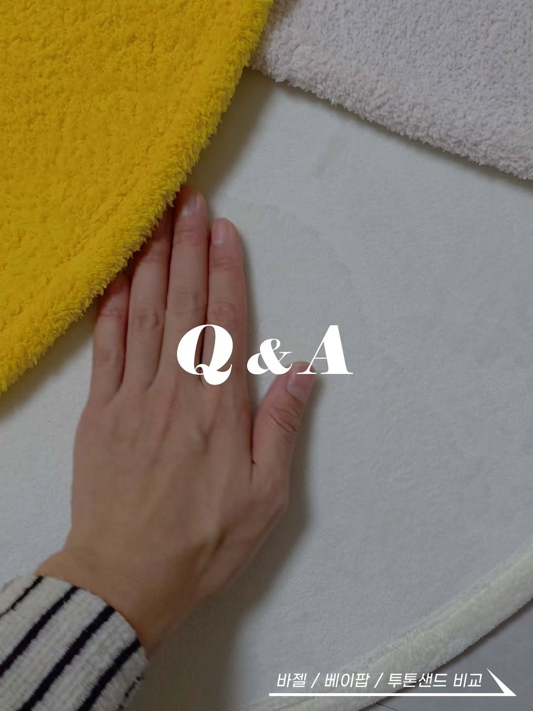 러그 종류가 많아 헷갈리시죠?😵💫 Q&A 모아 정리 해 봤어요! 〰️〰️〰️〰️〰️ ⁉️바젤 / 베이팝 / 투톤샌드 소재? 포근하고 부드러운건 전부 동일 전부 확실한 단모라 타사 제품보다 오염관리 월등히 높아요! [바젤] 밀도감 ★★★★★ 부드러움 ★★★★★ 바닥 밀착력 ★★★ [베이팝] 밀도감 ★★★ 부드러움 ★★★★★ 바닥 밀착력 ★★★★★ [투톤샌드] 밀도감 ★★★★ 부드러움 ★★★★★ 바닥 밀착력 ★★★★★ ⁉️'바젤' 사용시 미끄럽지 않나요? 수면양말, 일반양말, 맨발에도 전부 미끄러짐 없었고 아이들이 뛰어다녀도 멀쩡했어요! ⁉️두께는 어느정도 인가요? 바젤 / 베이팝 / 투톤샌드 전부 테두리 기준 1cm 두께로 타사 제품보다 월등히 도톰해요 ⁉️맨발로 밟는 촉감 차이? 셋 다 도톰해서 푹신한건 동일하지만 [바젤] 촘촘한 기모가 피부에 닿는 느낌 [베이팝 / 투톤샌드] 부드러운 양털이 피부에 닿는 느낌 ⁉️바닥에 밀착은 잘 되나요? 바닥 밀착력은 바젤 보다 베이팝 / 투톤샌드가 더 좋아요! 로봇청소기 쓰신다면 베이팝 / 투톤샌드 추천! ⁉️확실하게 포인트 되는 러그는? 여기 저기 포인트 주기 좋은건 색상 다양한 베이팝 강력추천! ⁉️200*300 세탁 시 탈수 되나요? 24kg 세탁기 기준, 탈수 안됐어요! 200*300은 30kg 이상 세탁기 권장합니다🫡 ⁉️모델별 청소 난이도 비교 [바젤] 손줍줍 ★/돌돌이 ★/청소기 ★ [베이팝] 손줍줍 ★★/돌돌이 ★/청소기 ★ [투톤샌드] 손줍줍 ★/돌돌이 ★/청소기 ★ ⁉️방수력 차이 비교 바젤은 방수력이 뛰어나고 베이팝 / 투톤샌드는 흡수력이 뛰어나요! ⁉️오염 시 제거 난이도 비교 [바젤]★ 물티슈 만으로 제거가 거의 가능하고 가벼운 초콜릿 얼룩은 쉽게 지워짐 [베이팝 / 투톤샌드] ★★ 물티슈 만으로 제거하기는 어렵지만 기계 세탁 후 웬만한 얼룩들 완벽히 제거됨 ⁉️기계 세탁 가능? 손상 없나요? 모든 러그는 기계 세탁 가능하고 찬물 세탁에도 러그 손상 없이 완벽하게 오염제거 됩니다! ⁉️각 모델별 적용 예시는 영상으로 확인 해 주세요! 〰️〰️〰️〰️〰️ 📍후기 평점만 4.8 이상 인기템 모두 모아 공구 진행 합니다🎉 📍공구 모델 바젤 (러그,주방매트) 베이팝 (러그, 주방매트) 투톤샌드 (러그) 📍사이즈 구성 - 러그 S (100*150) M (160*240) L (200*300) ---------- - 주방매트 50*120 50*150 〰️〰️〰️〰️〰️ 🎁이벤트 있어요! ★구매고객 증정 M사이즈 이상 구매고객 전원 (베이팝 워셔블 도어매트 40*60 타원형) 증정! ★구매인증(5명 추첨) 구매 후 '오픈피드'에 '성함+연락처 뒤4자리' 남겨주시면 (베이팝 워셔블 50*120 롱구름) 증정! ※사은품 색상은 랜덤 입니다! 〰️〰️〰️〰️〰️ 📍공구일정 2월19일 ~ 2월22일 📍댓글에 ❤️ 남겨 주시면 DM으로 구매링크 빠르게 갑니다📨 📍구매링크는 제 프로필링크 에서도 확인할실 수 있어요! #관리편한 #인생러그 #공구중 #멋쓰랩
