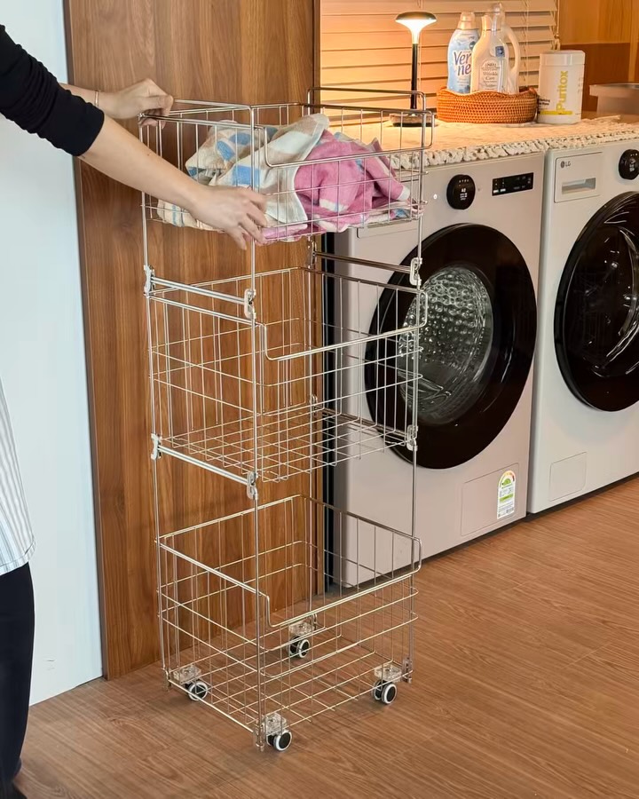 304 올스텐이라 젖은 빨래도 바로 OK ‼✨ 요즘 빨래가 왜 이렇게 많은지… 샤워 수건, 운동복, 아이 옷까지 젖은 채로 쌓아두면 괜히 마음이 찝찝했거든요 그래서 바꾼 JBJ 올스텐 청담 3단 세탁바구니 ✔️ 304 스텐 구조라 녹 걱정 없이 오래 쓰기 좋고 통풍 구조라 젖은 수건도 바로 넣어도 산뜻해요 👍 1단, 2단, 3단 같이 써도 예쁘고 공간에 따라 분리해서 따로 써도 OK 수건 / 속옷 / 외출복 칸칸이 나눠 담으니 세탁 전 정리도 한결 편해졌어요 😊 게다가 이동식이라 세탁실에서 베란다로 부드럽게 슥➰ 실용적인데 올스텐의 깨끗한 느낌까지 더해져 세탁실 분위기도 훨씬 정돈된 느낌이에요 💖 요즘 제 일상 속 작은 만족 JBJ 올스텐 청담 3단 세탁바구니예요 🕒 3월6일-재고 소진시 마감 ✨라라홈 프로필의 링크에서 바로 만나보실 수 있어요🥰