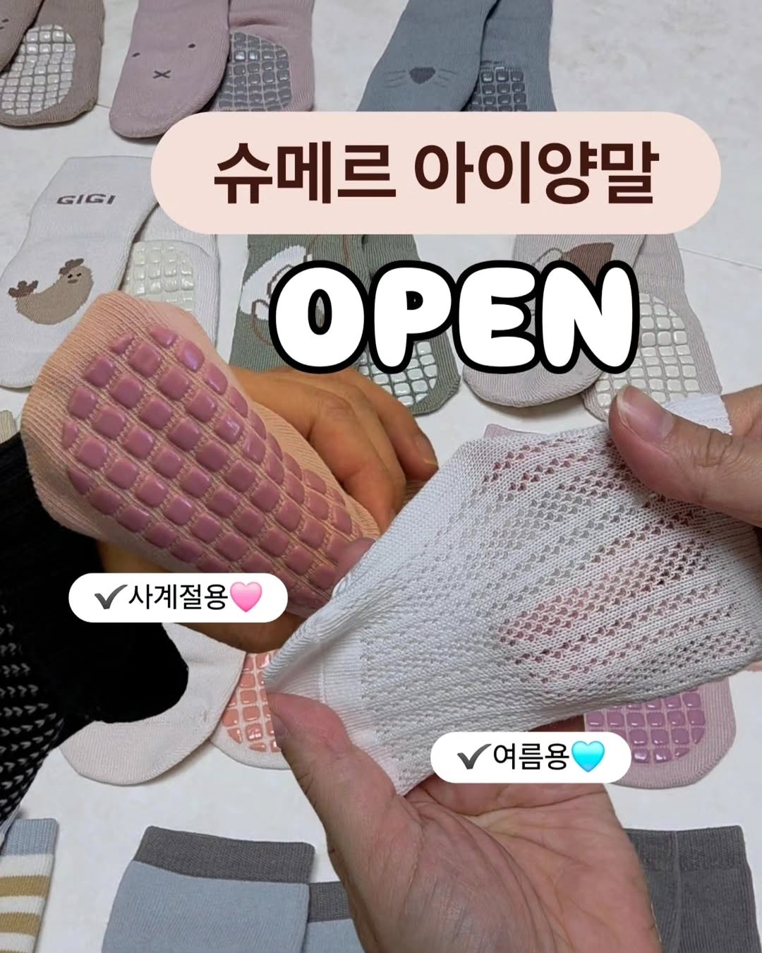 #공구오픈 #슈메르아기양말 신겨 본 양말중에 제일 최고👍 5개가 한셋트로 무려 1만원대‼️ ❤️여름용 / 사계절용❤️ 전 공구로 알게된 슈메르 양말🧦 첫걸음마부터 너무 잘신기고있는 중이랍니다 ✔️답답함없이 너무 좋고 ✔️앙증맞은 기여운 캐릭들과 ✔️무엇보다 미끄럼방지가 진짜 갑 ⭐️진짜 우리아이 안심양말로 손색없어요⭐️ 저희 릴리 , 걸음마 시작할 때 아기양말 이것저것 사서 신겨봤는데 - 미끄럼방지가 없는 것, 미끄럼방지가 있으나 마나한 그런 양말 정말 많더라구요 .... 😭 행여 어디서 미끄러져 넘어질까 불안한 마미들은 무조건 요거 신기셔요‼️ 슈메르양말 신고나서는 미끄러지는 일따윈 없을테니까요😍 ---------------- 🏷공구일정 4/21 - 26 ---------------- ✅️발바닥 전체 미끄럼방지처리 ✅️피부 자극 없는 무형광 원단 ✅️탄탄한 소재로 모양변형 없음 ✅️전 사이즈 KC인증완료 ✅️편한밴드와 통기성, 신축성 좋아서 착용감 굳 ✅️다양한 컬러 & 무난한 디자인 ! ✅️진짜. 완전. 갓성비 !!!!!! 이번공구는 🩷여름용 / 사계절용🩵 저는 둘 다 너무 잘 신겨져서 골고루 다 추천드리고 싶네요🙂 골라서 섞어가지고 계셔도 휘뚤마뚤 너무 유용하실 양말♥️♥️ 사이즈 S/M/L로 0세-5세까지 있으니 개월수 걱정없이 넉넉하게 구매가능ㅎㅎ 하이라이트에 11개월 때 s구매해 신은 저희 릴리모습부터 ~ 올려두었답니다ㅎㅎ 현재는 m 신고있어요 ! 제가 직접 신겨보고, 너무너무 만족스러워 들고오는 슈메르양말🧦 양말 고민중이시라면 슈메르😍 신겨보시면 절대 후회안하십니다🫶 무엇보다 가격이 말도안됨‼️‼️