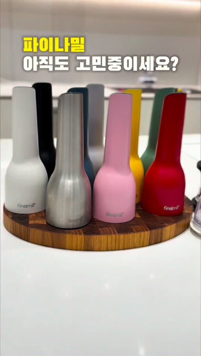 파이나밀은 본체와 다양한 팟으로 구성된 혁신적인 양념통입니다. 버튼 하나로 쉽게 양념을 갈 수 있어 요리를 더 편리하게 만들어줍니다. 디자인도 세련되어 주방에서 부담 없이 사용할 수 있습니다.