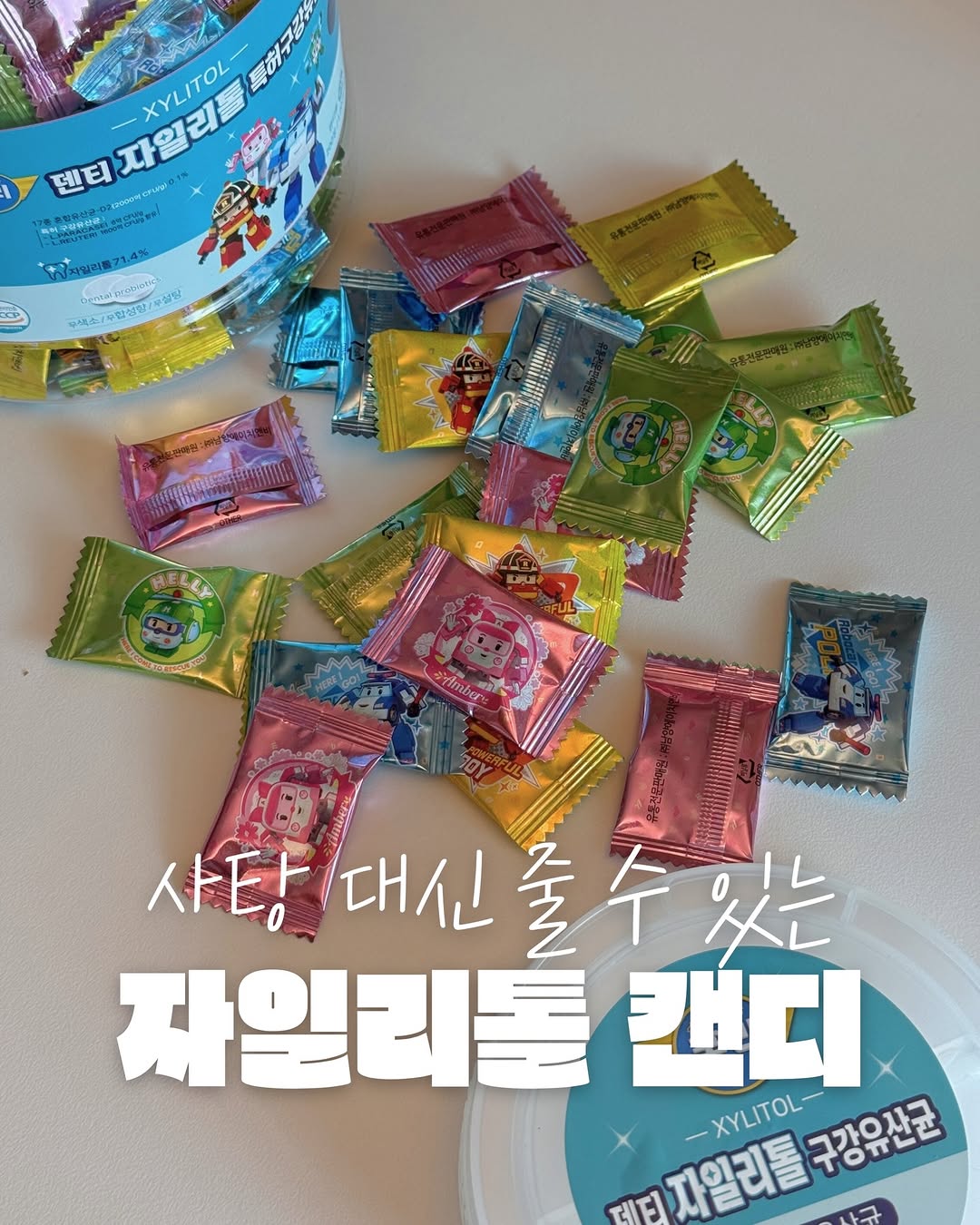 🍬 양치 후 사탕 찾는 아이 있다면 양치 끝났는데 또 먹겠다고 하는 순간…😂 매번 안 된다고 하기도 애매하고 그렇다고 그냥 주기엔 괜히 찝찝하죠 🥲 그래서 사탕 대신 줄 수 있는 걸 찾다가 이 캔디를 알게 됐어요!! 달콤한 맛은 그대로인데 설탕이 아니라 자일리톨이라 조금 더 안심하고 줄 수 있는 간식이에요 🍬 아이들 입속에는 설탕을 좋아하는 충치균이 있는데 자일리톨은 구조가 달라서 ✔️ 먹어도 제대로 활용을 못하고 ✔️ 활동이 줄어드는 원리예요 🦷 그래서 요즘은 양치 후 하나씩 습관처럼 주고 있고 외출할 때나 가방에 넣어두면 간식 찾을 때 꺼내주기 편해서 자주 챙기게 되더라고요 🙂 그리고 은근 좋았던 게 아이들이 좋아하는 로보카폴리 캐릭터 캔디라 그런지 아이도 거부감 없이 잘 먹고 😊 낱개 포장이라 하나씩 꺼내주기도 편해요 🙌🏻 아이 간식은 맛도 중요하지만 이렇게 성분도 한 번 더 보게 되잖아요 구강유산균이 들어있는 캔디라 그 부분도 괜히 더 마음이 가더라고요 🦷 양치 후 하나, 외출 후 하나 사탕 대신 줄 간식 찾고 계셨다면 이런 선택도 괜찮은 것 같아요 🤍 📆 공구기간: 3/16-3/22 👉🏻 프로필 링크에서 확인하실 수 있어요
