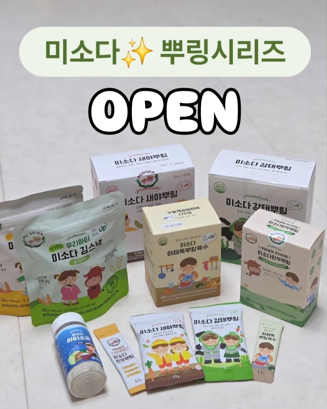 #공구오픈 #미소다뿌링 #미소다실온제품 엄마들 너무 바쁘시죠 ?🥲 근데 아마두 ... 제가 제일 바쁠 꺼예요 ... 저는 공구를 한달에 10개에서 많게는 25개까지도 하는데요 이유식부터 유아식‼️ 전부 해먹이는 중이랍니다💫 그럴 수 있는 치트키 중 하나 바~로 알려드릴께요😎✌️ 바쁜 엄마를 여유롭게 도와줄 미소다 뿌링 , 진짜 최고임💫 긴여행이나 외출에도 아주 간편하게 잘 해먹이는‼️ 이거 정말 치트키 중에 치트키예요 다른첨가물 일절없는❌️ 원재료 동결건조 방식제품⭕️ ♥️실온보관으로 챙겨다니면서 한포씩 뿌려주면 신세계 그자체인 한우뿌링과 감태뿌링 🩷다지고 자르지마세요 이유식부터 유아식까지 야채안 먹는 아이들 야채먹이기 뚝딱인 새야뿌링 🧡한우가 첨가되고 본연자체의 고소함 건강한 간식인 김스낵 2가지 💛밥태기 아이들 감칠맛 끌어올릴 뿌링육수까지 ---------------- 🏷공구일정 4/9 - 12 🏷공구라인 - 감태뿌링 ✨️릴리맘 pick✨️ - 한우뿌링 - 새야뿌링 - 김스낵 (오리지널 / 치즈맛) - 뿌링육수 - 아이소금 공식몰에서 진행으로 7만원 이상 구매시 무료배송이구 공식몰 회원가입 시 2,000원쿠폰도 받아서 사용가능하십니다🫶🫶 ---------------- ✅️감태뿌링 (1박스 10포) 미소다 신상 국내산 감태+야채/원물 고운분말타입이라 야채안먹는아이들도 모르게 ~ 감칠맛 폭팔하는 뿌려먹는 밥토핑 ✅️ 한우뿌링 (1박스 20스틱 / 10스틱 선택가능) 간편함과 영양을 다 잡았어요😍 그 어떠한 첨가물도 없기에 6개월아가도 섭취가능 ! 한포에 100% 무항생제 한우 원물이 무려 16g 영양소 손실을 최소화한 동결건조 ! 찜, 국, 죽, 반찬 어디든 뿌려주기만 하면 소고기 섭취완료👍 ✅️ 새야뿌링 (1박스 10포) 새우 + 6가지 국내산 유기농 야채를 그대로 동결건조 죽, 리조또, 계란찜, 계란말이 등 어디든 넣기만 하면 끝 ✔️새우 알러지 테스트 끝난 후, 권장드립니다 ✅️ 김스낵 (오리지널 - 10개월 / 치즈맛 - 12개월 ) 기계아닌 수작업으로 만들어 정성가득 첨가물❌️ 무항생제 한우 + 국내산 김 + 유기농 찹쌀 한봉지에 동결건조 한우 3%, 한우원물 11g 함유 설탕❌️ 당없이 나트륨 1% (재료 본연의 나트륨) 건강한 간식으로 최고 ! 고소하고 바삭바삭한 식감으로 아이들이 정말 좋아해요✌️ ✅️ 뿌링육수( 1박스 30포 ) 당연히 전성분 💯 국산 양파, 대파, 당근, 무, 양배추, 마늘, 표고버섯, 생강, 우엉, 연근 ! 아이가 먹는 국, 조림, 무침 등 다양한 요리에 간편하게 한포 ✔️물 300ml당 한포 ! 비법채수 완성 ! (싱겁다면 2포, 간이 쎄다면 물을 더 넣어조절 가능) 육아는 템빨이라고 하죠, 그 중에서도 항상 제일 고민인 게 아이 밥🤔😮💨 요런 치트키 제품 몇통씩 들고있으시면 정말 든든하신거 다들 알고계시죠 ? 묻따말 최고입니다 공구가로 저렴하게 구매해서 가~득 쟁여 놓으셔요🩷🩷 필수템 ✨️