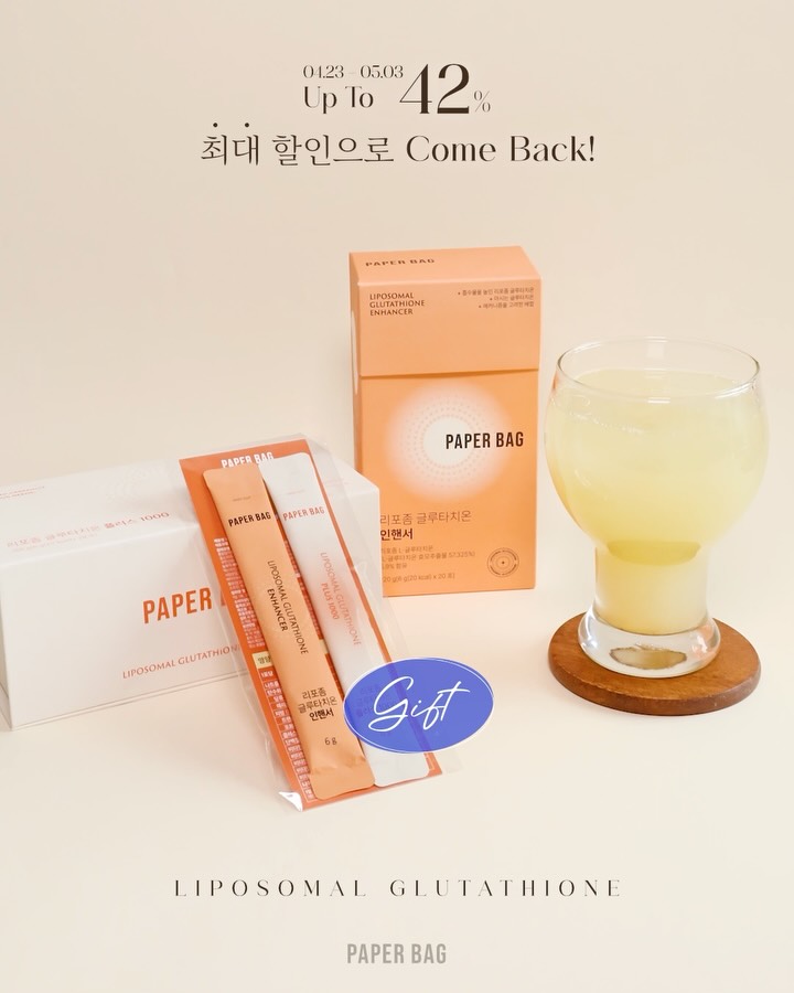 이것만 이야기할게요 이번 글루타치온은 지금껏 단 한번도 없었던 가격으로 옵니다..! 이번 리포좀 글루타치온은 놓치면 후회하실거예요! ⭐️몇 년전 페이퍼백 리포좀 글루타치온이 단종되었던 때가 있거든요 수지타산이 맞지 않아, 판매하면 할수록 적자가 돼 어쩔 수 없이 단종시켰다가 요청이 너무 많아 가격을 인상해 다시 출시한 게 지금의 페이퍼백 리포좀 글루타치온인데요 ⭐️그때 단종되기 전 그 가격 수준으로 준비했습니다 ⭐️많은 분들이 경험해보시기를 바라는 마케팅 목적으로 말도 안되는 리포좀글루타치온 +1박스 본품 증정 이벤트를 준비했으니 혼합옵션 / 플러스 리포좀 글루타치온 3박스 옵션 구매자 모두들 받아가시기를 바라며.. ⭐️뿐만 아니라, 드셔보시고 불만족시 100% 환불을 보장합니다..! 전고객 리포좀 글루타치온 2종 맛보기팩 세트를 드리니 (정가 8,000원 상당) 페이퍼백 리포좀 글루타치온이 처음이시라면 한번 드셔보세요 이 맛보기 이벤트를 한번 했었거든요 불만족시 100% 환불 보장!으로요 그런데 환불건이 0.01%도 안나오더라구요 그래서 더 자신있게 준비했습니다 ⭐️드셔보시고 결정하세요!⭐️ ✋🏻리포좀 글루타치온 2종 둘 다 드셔보고 싶으셨던 분들께도 좋고 ✋🏻먹어보고 결정하고 싶은데.. 하셨던 분들께도 좋고 ✋🏻지인들에게 추천하기도 좋고 ✋🏻그동안 잘 드시고 계셨던 분들은 더 받으니 또 좋고 맞죠?!🧡 이것만 기억하세요 순수함량과 흡수! 그리고 글루타치온 자체 생성! 페이퍼백 글루타치온은 흡수율을 높힌 리포좀 타입으로, 소화기를 지나면서 파괴되는 글루타치온이 아니에요 🟠일반 글루타치온 대비 훨씬 강한 효과를 내고 🟠글루타치온이 몸에 ✔️약 40% 더 증가하게 하면서 🟠우리 몸에 글루타치온을 그대로 흡수시키는 원리의 ✔️순수함량 1,000mg의 리포좀 글루타치온이 페이퍼백 플러스 리포좀 글루타치온 1,000으로 그냥 전체 글루타치온 함량이 아니고 진짜 글루타치온의 순수 함량만 1,000mg이니 한번에 느껴지는 반응이 다르거든요 여기에 글루타치온과 함께 섭취했을 때 시너지를 낼 수 있는 상호작용을 고민해 ⭐️마시는 레티놀 700ug와 ⭐️비타민C 일 권장량 100%를 함께 배합한 제품이라 효과가 좋을 수 밖에 없게 한 제품이에요 1️⃣리포좀 글루타치온 국내 최대 순수함량 1,000mg 2️⃣마시는 레티놀 + 비타민C 로 시너지를 만들며 3️⃣워터믹스 형태로 과학적인 수분 섭취와 우리 몽에 흡수가 될 수 있도록 이온음료의 원리로 저삼투압 효과를 줘 물을 더 과학적으로 섭취할 수 있도록 하는 등 마시는 형태로 만든 이유조차 그냥 맛있게 하기 위함이 아닌 이온음료의 원리를 이용해 만들어 저삼투압 효과를 줘 더 잘 흡수될 수 있도록 함이니 분말채 드시지 마시고 물에 섞어 드시면 더 좋습니다! 가장 중요한 건 맛! 맛이 없으면 일단 손이 잘 안가잖아요 4️⃣페이퍼백 플러스 리포좀 글루타치온은 아주 맛있으니 걱정하지마세요! 엷은 레몬오렌지 이온음료같은 맛이라 거부감도 없고 5️⃣맛있지만 한포당 당함량은 1g, 무설탕이라는 점까지요! 특별한 레몬+모로오렌지 맛이라 맛있고, 냄새가 나지 않아 호불호가 없습니다 🟠가격은 비싸지만 한방에 확! 하는 국내 최대 함량의 리포좀 글루타치온 순수함량 1,000mg 플러스 리포좀 글루타치온! 🟠1/3 가격에 편하게 드실 수 있고, 체내에서 글루타치온이 사용되고 또 재사용 할 수 있도록 산화 환원 시켜 고함량이 아니더라도 순수함량 300mg이지만 몸에서 글루타치온이 잘 활용되게 하는 인핸서 리포좀 글루타치온! 어떤걸로 드셔도 효과가 아주 좋으니 니즈에 맞춰 골라 드셔보세요❤️ 그동안 어떤걸로 골아야할지 모르겠어요🤧 하셨던 분들이라면 이번에 드셔보시고 결정하시면 되겠습니다! 🎁글루타치온을 기다리셨다면 아무 이모티콘이든 남겨주세요! 글루타치온과 함께 헤어메스를 챙겨 드시고 싶으신 분들 계시죠?! 페이퍼백 플러스리포좀글루타치온 + 헤어메스 이뮨 + B컴플렉스 세트를 랜덤으로 보내드릴게요! 마케팅 목적으로 준비한 말도 안되는 프로모션이거든요.. 전고객 +1박스 증정 옵션과 함께 리포좀 글루타치온 체험팩 증정으로 불만족시 100% 환불 이벤트까지 꽉 채워 내일부터 (23일 목요일 오전 10시) 3일까지 페이퍼백에서 만나요! @paperbagkr #페이퍼백 #리포좀글루타치온 페이퍼백을 검색해 접속해주세요