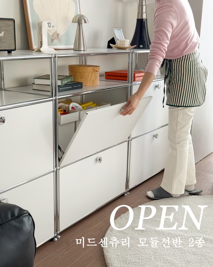 💛 미드센츄리 모듈선반 2종 공구예고 조립 필요없는 완제품으로 착한가격에,퀄리티 대만족!!모듈선반 공구 준비했어요😊 요즘 인테리어 관심 있으신 분들이라면 이 선반 많이 보셨을 거예요 연예인 집이나 인테리어 영상에서 자주 보이는 요즘 인기 많은 스타일이에요😍 심플한 디자인인데 공간 분위기를 확 살려줘서 하나만 둬도 느낌이 달라지더라구요✨ 특히 쇠테리어 감성 좋아하시는 분들께 딱 맞는 아이템이에요 국내 생산에 포스코 강판 사용으로 내구성도 탄탄한 편이고요 무게감 있는 물건도 안정적으로 올릴 수 있어서 수납용으로도 충분히 활용 가능해요 조립 없이 바로 사용할 수 있는 점도 은근 큰 장점이에요💚 무엇보다 이 디자인에 이 가격대라니 가성비도 정말 잘 나온 제품 2가지 타입으로 준비했어요😎 🔔빠른구매 원하시면 흔적 남겨주세요 좋아요❤️로 알림 드릴게요 :)