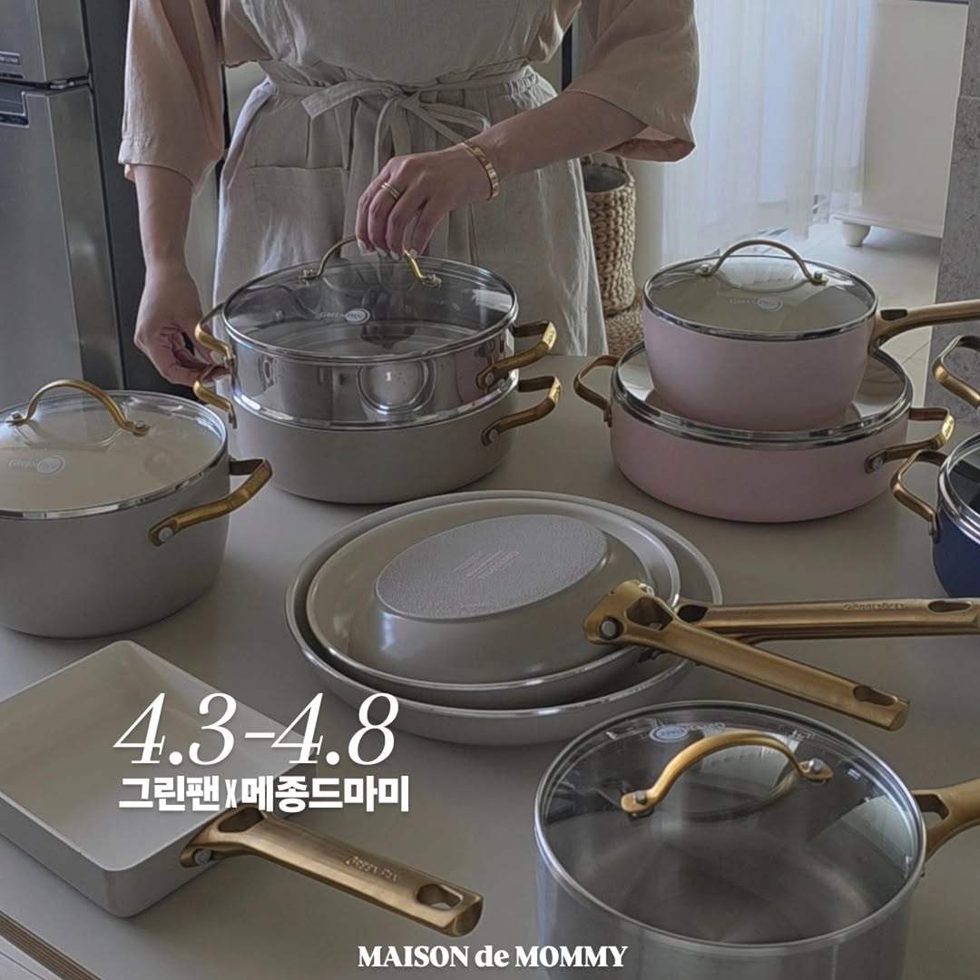 ♟️그린팬 𝑪𝒐𝒎𝒊𝒏𝒈 𝑺𝒐𝒐𝒏⠀⠀ ⠀⠀⠀⠀⠀⠀⠀⠀ ⠀⠀ 주방에서 매일 쓰는 프라이팬⠀⠀ 그린팬으로 정착했어요🖤⠀⠀ ⠀⠀ ⠀⠀ 코팅이 벗겨져도 안전하고⠀⠀ 유해물질 없는⠀⠀ 세계 최초 세라믹 논스틱 코팅팬⠀⠀ 메종드마미에서 만나보세요🖤⠀⠀ ⠀⠀ ⠀⠀ ☑️ 코팅팬인데 안심하고 쓰는 이유⠀⠀ PFAS, PFOA, PTFE을 전혀 사용하지않아⠀⠀ 코팅이 벗겨져도 안전 (유해물질 X)⠀ ⠀⠀ ⠀⠀ ☑️ 이런 분들께 추천⠀⠀ • 아이 음식 자주 하는 집⠀⠀ • 코팅팬 찝찝했던 분들⠀⠀ • 스텐팬 실패해본 분들⠀⠀ ⠀⠀ ⠀⠀ ☑️ 그린팬을 선택한 이유⠀⠀⠀⠀⠀⠀⠀⠀⠀ • 세계최초 세라믹 논스틱 코팅⠀⠀⠀⠀ • PFAS 무첨가 (유해물질 걱정 X)⠀⠀⠀ • 코팅 손상 시에도 안전성 유지⠀⠀⠀ • 오래 쓰는 내구성⠀⠀⠀ • 열전도율 우수⠀⠀⠀⠀⠀⠀ • 다양한 열원 사용 가능⠀⠀⠀ • 빠르고 고른 열전도⠀⠀⠀ • 식기세척기 OK ⠀⠀⠀⠀⠀⠀⠀ ⠀⠀ ⠀⠀ ☑️ 라인업⠀⠀ • 20/24/28cm 프라이팬⠀⠀ • 18cm 편수냄비⠀⠀ • 20cm 양수냄비⠀⠀⠀⠀⠀⠀ • 24cm 전골팬⠀⠀ • 28cm 궁중팬(웍)⠀⠀ ✔️ 단품, 세트 구매 가능합니다⠀⠀ ⠀⠀ ⠀⠀ ☑️ 공구일정⠀⠀ • 4.3(금) - 4.8(수)⠀⠀ ⠀⠀ ⠀⠀ ♟️ 𝑴𝑨𝑰𝑺𝑶𝑵 𝒅𝒆 𝑴𝑶𝑴𝑴𝒀 X GreenPan⠀⠀⠀⠀⠀ 🖤 @maisonde_mommy ⠀⠀⠀⠀⠀⠀⠀⠀⠀⠀⠀⠀ ⠀⠀⠀⠀⠀⠀ ⠀⠀⠀⠀⠀ #메종드마미 ⠀⠀⠀⠀⠀⠀⠀⠀⠀⠀⠀ #메종드마미X그린팬⠀⠀⠀⠀ #그린팬⠀⠀⠀⠀⠀⠀⠀⠀⠀