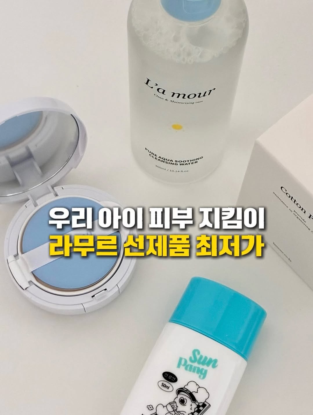 🌞 라무르 선케어템! OPEN ⠀ ‼️라무르 전제품 구매 가능‼️ (고정피드 이벤트 참여하세요!) ⠀ 공구기간: ~ 4/23 마감 배송기간: 평일 기준 1-2일 이내 출고 구매방법: @181213_hy 👈🏻프로필 링크 클릭! ⠀ ⠀ 그동안 많은 브랜드 선제품을 사용해 봤지만 제형이 너무 뻑뻑해서 바르기 힘들거나 백탁 현상으로 이 상태로 어떻게 나가지..? 하는 제품들로 실패에 실패를 겪었던,,🥹 하지만!! 라무르는 달라요〰️ ⠀ 촉촉한 제형 ok! 백탁 현상 없음!!!! 여기에! 물 세안이 따로 필요 없는 클렌징워터까지! 우리 아이 피부 지킴이! 라무르 선케어 제품 최저가 공구 오픈합니다✨ ⠀ 왜 라무르 선제품을 선택! 해야 하는지! 빠르게 알려드릴게요😎 ⠀ 시중에 판매되는 선쿠션은 대부분 2~3가지 정도의 조건만 갖추고 있지만, 라무르는 5가지 조건을 모두 충족하는 제품이에요! ✔️아기 선제품 중 최고 차단 지수 ✔️논나노 무기자차로 6개월 아기도 안심하고 사용 가능 ✔️덧바르기 가장 편한 쿠션 타입과 전신 사용이 가능한 로션 타입 ✔️차단 지수 정식 인증! 받은 제품 ✔️땀 물놀이에도 유지되는 워터프루프 이렇게 모든 걸 갖춘 제품은 라무르 밖에 없어요!🫢 ⠀ 🌞선쿠션, 선로션 차이점 선쿠션(얼굴용) 외출 후 얼굴에 덧바르기 편해요! 선로션(전신용) 외출 전 얼굴과 몸에 바르기 편해요! 🫧클렌징워터 ✔️4단계 저자극 세정 성분으로 선크림, 침, 오염물까지 한 번에 정리 ✔️노워시 클렌징워터로 물 세안 따로 필요 없어요 ✔️세정과 동시에 4가지 진정 성분으로 피부 진정 ✔️3가지 보습 성분으로 세정 후에도 피부가 촉촉 ✔️눈 시림이 없어요 ⠀ 📌공구혜택 선 쿠션 3+1 선 쿠션 3개 + 클렌징 워터 증정 선 로션 3+1 선 로션 3개 + 클렌징 워터 증정 ⠀ ‼️인증 안 된 일반 제품이랑 비교 불가‼️ 성분부터 차단력, 사용감까지 다 잡은 라무르로 이번 여름 준비 끝내세요〰️🩵 ⠀