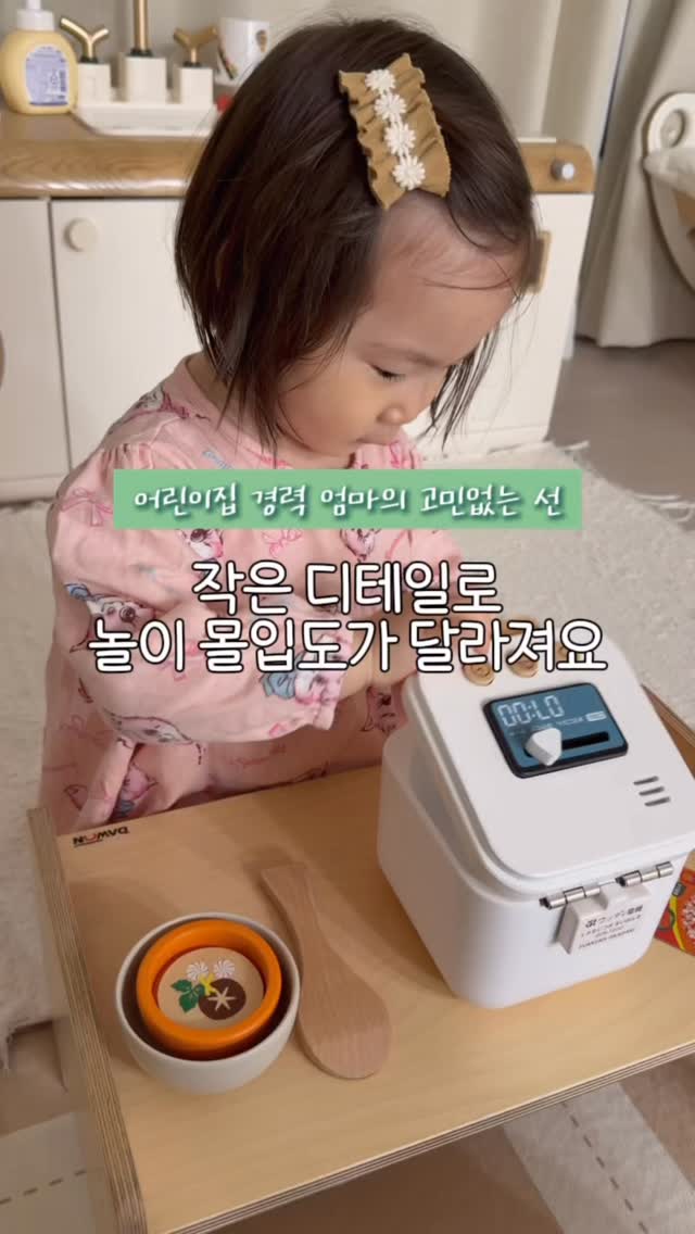 [2차/핫딜예고] 1년 쓰고 바꾸는 그런 게 아니에요🤔 작년 어린이날, 역할놀이가 시작하던 시기에 고민없이 선택했던 원목 소꿉놀이 1년이 지난 지금은요? 대만족템✨ ➖ 가격대가 다른 제품보다 조금 있는 건 사실이에요😅 그런데 유아기까지 쭉- 쓸 거라고 생각하면 처음부터 제대로 된 걸 사는 게 맞더라구요! 몇 년을 써도 견고하니까 이게 진짜 지갑을 아끼는 방법이죠😉 ➖ 교사로 일하면서 정말 많은 소꿉놀이를 써봤는데 이만큼 디테일하고 위생 걱정 없는 건 우디푸디가 유일했어요. 이번 2차 공구에는 지난번 인기 구성에 밥솥세트가 추가됐답니다~🍚 ⋆˙∘˚☆˚∘˙⋆⋆˙∘˚☆˚∘˙⋆ 📌원목 소꿉놀이 구성안내 - 밥솥 set - 샐러드 set (각인 추가 가능/2~3일 소요) - 치즈함박 스테이크 set - 요거트팝핑 아이스 set - 베이커리 set ⋆˙∘˚☆˚∘˙⋆⋆˙∘˚☆˚∘˙⋆ 💬댓글에 [하트 이모지] 남겨주시면 오픈 후 비밀 할인 링크 바로 보내드릴게요💨 🚚 무료배송 ⏰ 평일 오전 10시 이전 주문 시 당일출고 🕒 공구 일정: 4/6(월) ~ 4/9(목) 오전 6시까지