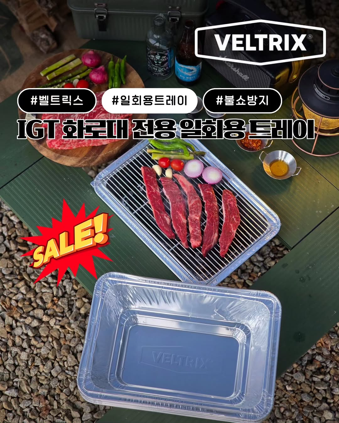 캠핑 시 불쇼 걱정 없는 벨트릭스 불쇼방지 트레이 5P. 기름 떨어져도 안전하고 일회용으로 설거지 필요 없음. 캠핑 초보도 쉽게 사용 가능.