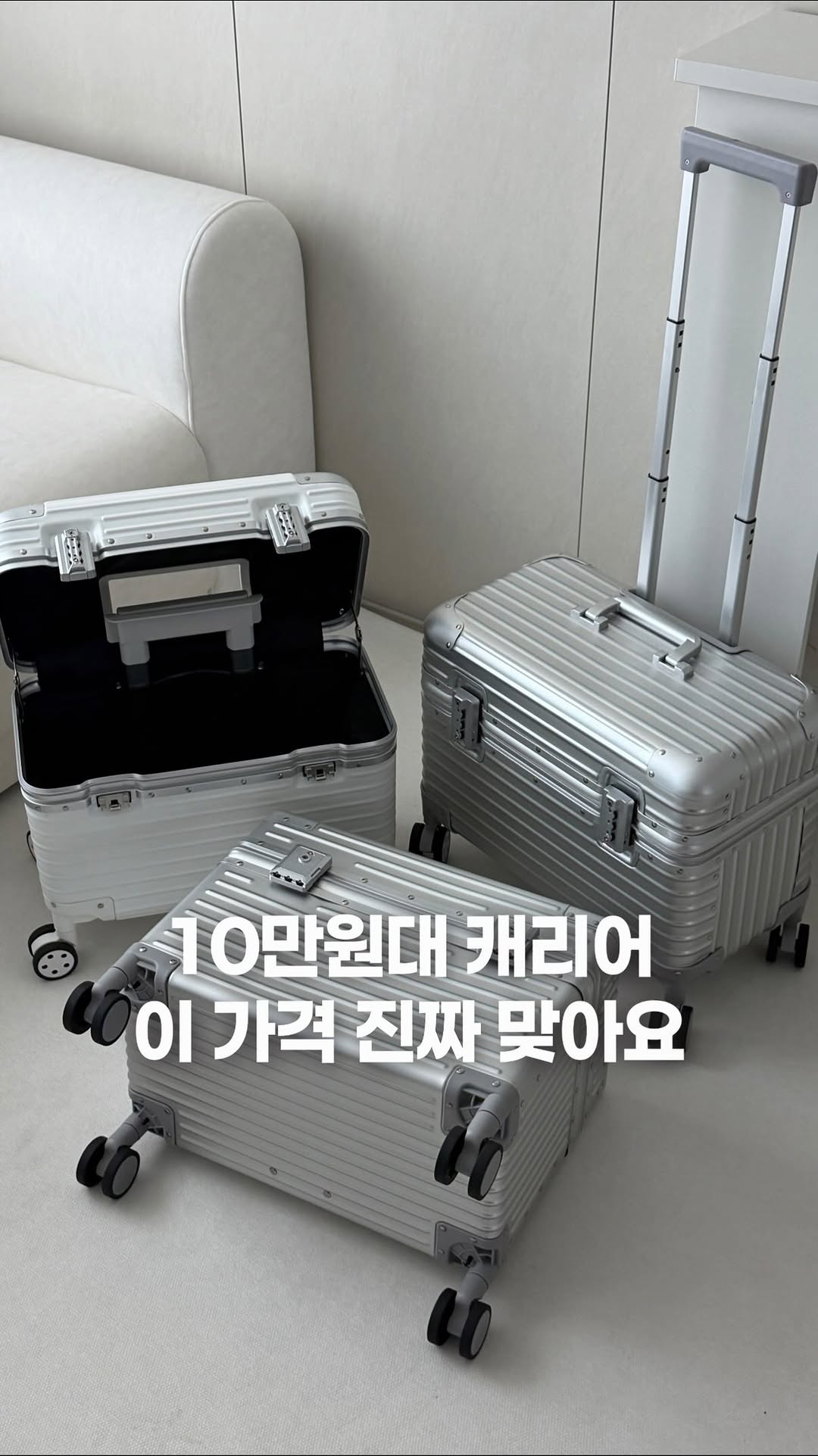 🩵 머즈캐리어 🏷️ 4월 15일 수요일 오전 10시 공구 오픈됩니다 🏷️ 댓글에 [ 알림 ] 이라고 써주시면 공구 오픈 후 알림 드려요 💛 🐤 라운드 공구가 : 129,000원 🐤 직각 공구가 : 139,000원 🐤 화이트/핑크 PU 공구가 : 115,000원 위로 열리는 캐리어 다들 갖고 싶으셨죠 ? 저도 너무너무 갖고싶긴했는데 원조 브랜드는 200만원이 넘는 가격이 쳐다도 안봤구요 🥲 다른 가성비 브랜드도 20만원 후반대라서 고민했는데 요거는 보자마자 이거다!!!! 싶었어요💛 사심가득담아서 준비한 공구에요 🙈 1박이든 2박이든 내 짐은 많이없는데 아이짐은 너무 많고 급하게 아이짐 꺼낼 일도 많잖아요? 눕혀서 지퍼 열고 다 뒤적거리는 거 이제 그만❌ 위로 톡! 열어서 꺼내면 끝이라 여행길이 훨씬 여유로워져요 시댁·친정 갈 때도 짐 한가득 챙기기 바쁜데 깊게 수납돼서 깔끔하게 들어가고 꺼내기도 편하니 이동할 때 진짜 유용해요!! ✔️ 100% 풀 알루미늄 바디 → 튼튼+고급스러움 ✔️ 위로 여는 구조 → 눕힐 필요 없음 ✔️ TSA 정품 락 / 117시간 품질테스트 통과 ✔️ 내부 충격방지 포켓 4개 → 노트북, 여권 등 안전하게 ✔️ 바퀴 탈부착 가능 → 세척·보관 위생 걱정 끝 ✔️ 기내용 사이즈 / 3.6kg 가벼운 무게 → 단기여행·캠핑·출장 다 커버 ✔️ 3년 AS 보장(1년 무상) / 국내 무료배송 💬 찐후기 왜인지 모르겠지만 일반 캐리어는 평소에 간단하게 1박2일갈때는 들고가기 부담스럽더라구요 ! 근데 요거는 진짜 같은 20인치인데 사이즈도 더 컴팩트해보이고 사용하기도 편해서 진짜 진짜 좋았어요 사이즈는 컴팩트한데 수납은 많이 되고 위로 열리니까 길바닥에 앉아서 캐리어 여는일 없고 낮으니까 아이도 위에 앉아있어도 문제없구요 1년에 몇번 안쓰는 큰캐리어도 필요하긴하지만 더 손이 많이가는건 이거같아요 🩷 무엇보다 바퀴 분리 !!! 이거 진짜 완전 좋아요 :) 여행다녀오면 눕혀서 바퀴 닦는것도 일인데 쏙 빼서 세척할수있고 바퀴닳아도 캐리어 전체가 아닌 바퀴만 교체하면되니까 훨씬 오래쓸수있어요!! 🎁 레인커버 100% 증정 ✈️ 휴가,아이들과의 여행, 시댁·친정 방문까지 짐도 많이 들어가고, 급할 땐 위로 톡 열어서 꺼내 쓰는 캐리어예요💛 🏷️ 4월 15일 수요일 오전 10시 공구 오픈됩니다 🏷️ 댓글에 [ 알림 ] 이라고 써주시면 공구 오픈 후 알림 드려요 💛 💙 인스타 채널로 오시면 모든상품 공구 오픈 알람드려요 :)