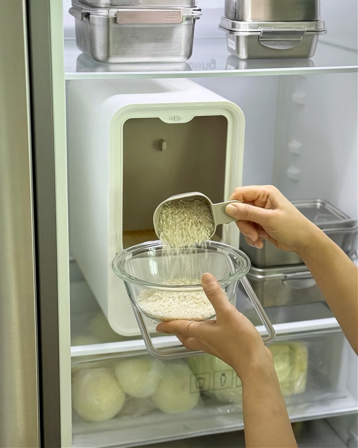 락앤락 큐브 쌀통은 경사진 구조로 쌀이 자연스럽게 모여 사용이 편리하며, 전면 도어로 쉽게 꺼낼 수 있습니다. 밀폐가 잘 되어 습기와 쌀벌레 걱정이 적고, 슬림한 디자인으로 주방에서 정돈된 느낌을 줍니다.