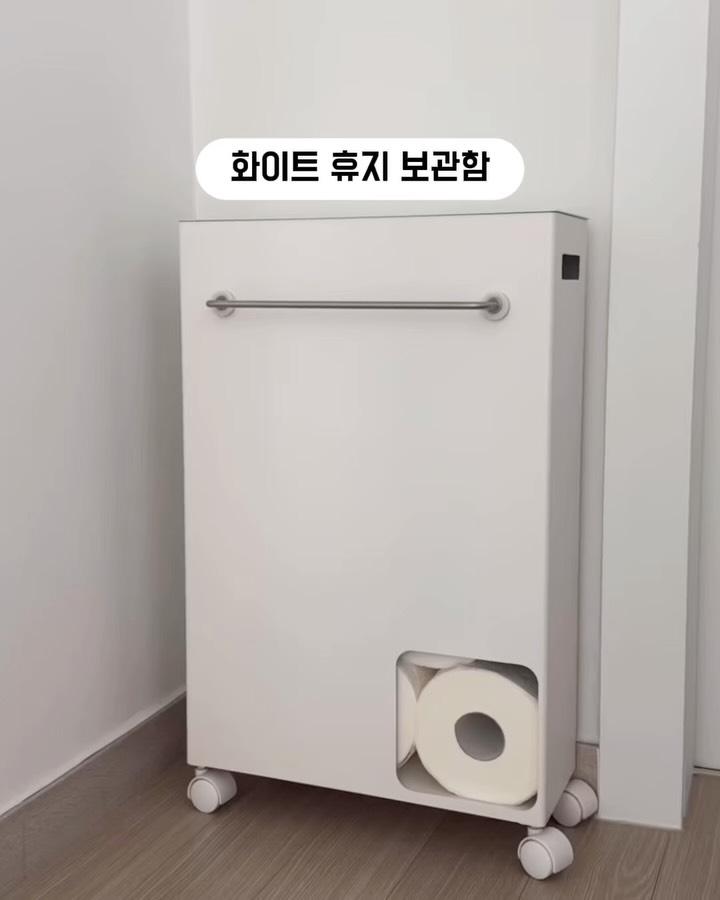 처음 썼던 수납함도 애정하지만 🧻 휴지 보관함은 제가 12년 전부터 썼었던 일본 브랜드 롤 휴지 보관함 욕실 앞에 두고 쓰니 휴지 꺼내 쓰기 너무 편하고 디자인도 이뻐서 집에 오는 손님들이나 피드 속 저희 집 사진보시고 제품 문의가 많아 업체에 부탁드려 같이 제작한 제품이에요~☺️ 이건 다른 분 공구에서는 없는 제품이니 저희 집처럼 욕실장이 작아 수건 보관만으로 벅차 롤 휴지 보관하기 마땅치 않거나 멀리가지 않아도 롤 휴지 편하게 꺼내 쓰고 싶으시다면 꼭 써보세요~🙌 📍바퀴는 탈부착 가능해 원하시는 용도로 쓰시면 되시고 (일본 제품은 바퀴가 없어서 바닥에 두니 청소기랑 부딪쳐 잔 스크래치나 먼지가 붙고 청소할때 들어 옮기기 귀찮아 전 바퀴 장착해 쓰는데 참고해 주셔요) 📍손잡이는 자석이 붙는 곳 어든 붙으니 냉장고, 식세기, 주방 후드, 디귿 다른 수납함에 부착해 다양하게 활용해 보세요 . . . 🏷️디귿_화이트 휴지 보관함 . . . #바이미룸#bymiroom#바이미룸공구#살림팁#디귿