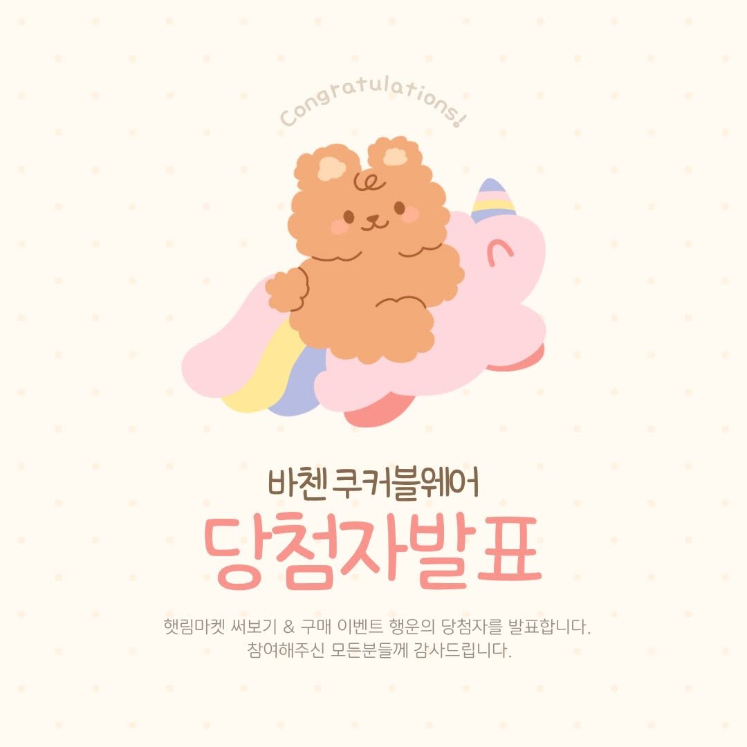 📢바첸 쿠커블웨어 이벤트 당첨자 발표 🥳 안녕하세요, 햇림입니다🙇♀️ 많은 사랑주신 바첸 쿠커블웨어 써보기 & 구매이벤트 발표합니다🎉 ⚠️ 써보기 이벤트 당첨자 분들과 연락처 변동사항 있으신 분들은 3.24(화) 자정까지 👉🏻전화번호, 주소, 성함 💌디엠 보내주세요! 주소, 연락처 취합 후 상품 일괄 발송 됩니다🚛 (변동사항 없으시면 기존 수취인 주소로 상품 보내드려요!) 🌸바첸 써보기(랜덤 발송) @jekw0507 @김수현-p2r1l 🌸알텐바흐 스텐밧드 M 박*영 5845 반*정 4743 이*아 3024 조*심 7740 장*식 5552 🌸네이버페이 오천원 박*주 1437 김*숙 3727 곽*경 3711 신*진 0096 장*정 5504 이*선 3637 김*희 9547 김*미 1403 이*하 7367 이*영 3923 김*현 3431 김*현 6559 홍*임 2902 정*숙 4282 이*경 2266 이*은 7239 김*주 7000 한*성 3505 장*아 1086 장*진 5662 당첨되신 모든 분들 축하드립니다🥳 과분한 사랑에 늘 보답하는 햇림이 되도록 노력하겠습니다! ‼️4월부터 최대 24% 가격인상 확정!! ⭐️프리미엄 스텐냄비 스텐팬 AMT 최저가 공구중🔛 📌프로필 링크로 오세요👋🏻 🔜카카오쇼핑 상반기 최대 페스타와 함께하는 ✨프리파라 브루클린 트라이탄 밀폐용기 💝역대급 할인 혜택으로 찾아옵니다! 📆3.26(목) 오후 5시에 만나요👋🏻 #햇림마켓