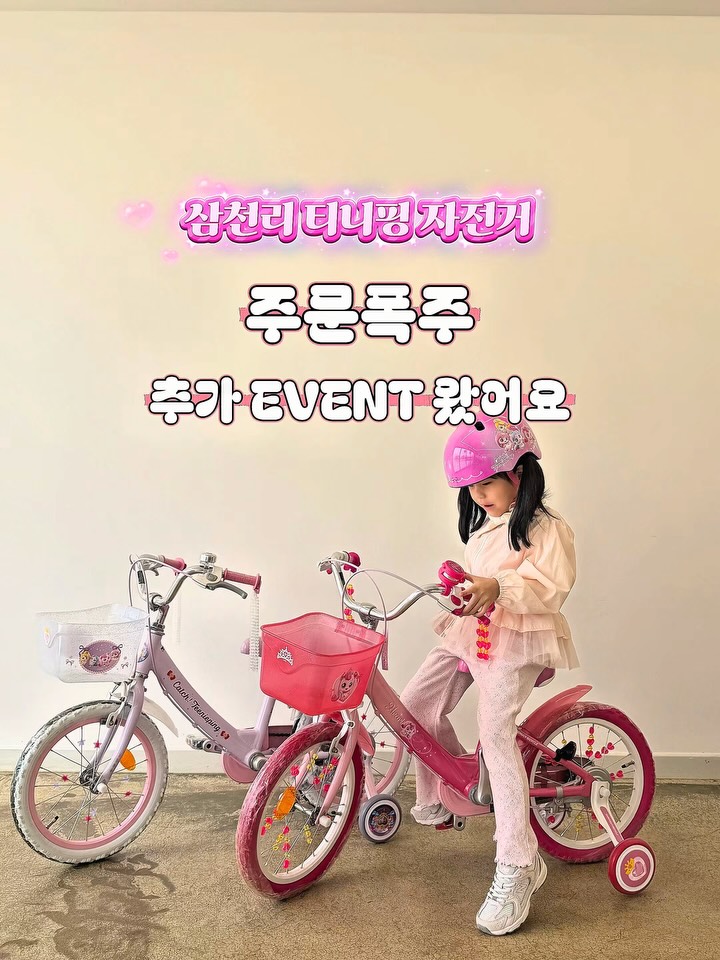 🔥 주문폭주 🔥 삼천리 자전거 특가 🚨 비상입니다... 🚨 티니핑 + 딩고 자전거 주문폭주로 인해 컨텐츠도 잠시 보관처리 해놓은 상태고 배송안정을 위해 링크가 닫혔습니다 🥲 👉🏻 자전거 문의는 개별 DM 남겨주세요 피드가 왜 갑자기 사라졌는지 ⁉️ 배송은 언제되는건지 문의가 많아서 ⁉️ 안내차 피드 추가 업로드 합니다 어제까지 주문하신 분들 배송건 차질없이 처리해드릴게요 ♥️ —————————————————— ‼️ 주문폭주 감사 EVENT ‼️ 🚲 어떤 자전거 구입했는지 댓글 인증 해주시면 추첨해서 선물 보내드려요 ♥️ 기존 오픈 피드에 댓글 남겨주셨던 분들은 참여완료된 상태이니 걱정 안하셔도 돼요 [ 당첨자 23명 뽑아드립니다 ] ▫️ 선물 1) 투믹서 믹서기 (홈쇼핑 완판 제품) 색상 랜덤 발송, 총 3분께 선물드려요 텀블러 사이즈 휴대용 믹서기입니다 ▫️ 선물 2) 네이버페이 5천원 상품권 기존 10분에서 10분 더 추가합니다 ♥️ —————————————————— [ 몇인치로 사야할까요? ] ✅ 16인치 ( ~ 110cm 까지 권장 ) 작년 봄에 미소와 미소 친구들 키가 90cm 중후반 ~ 100cm 초반 정도일 때 슈팅스타 티니핑 자전거 16인치로 구입! 111cm인 지금도 16인치 잘타긴 해요 ✅ 18인치 ( ~ 110cm 이상 권장 ) 올해 봄에 미소 키가 111cm가 돼서 18인치로 UP 했는데 무리 없이 잘 타요 —————————————————— [ 삼천리 자전거 공구 라인업 ] 1️⃣ 프린세스 캐치! 티니핑 자전거 • 16인치 (하츄핑 / 로열티니핑) • 18인치 (하츄핑 / 로열티니핑) 👉🏻 90% 조립으로 배송 👉🏻 배송기간 최대 2주 정도 소요됩니다 2️⃣ 딩고 자전거 • 14인치 (핑크 / 블루) - 손잡이 포함 • 16인치 (핑크 / 블루 / 아이보리) • 18인치 (핑크 / 블루 / 라임) • 20인치 (데님블루 / 화이트 / 라일락) 👉🏻 90% 조립으로 배송 👉🏻 배송기간 최대 2주 정도 소요됩니다 . . #삼천리자전거 #티니핑자전거 #티니핑