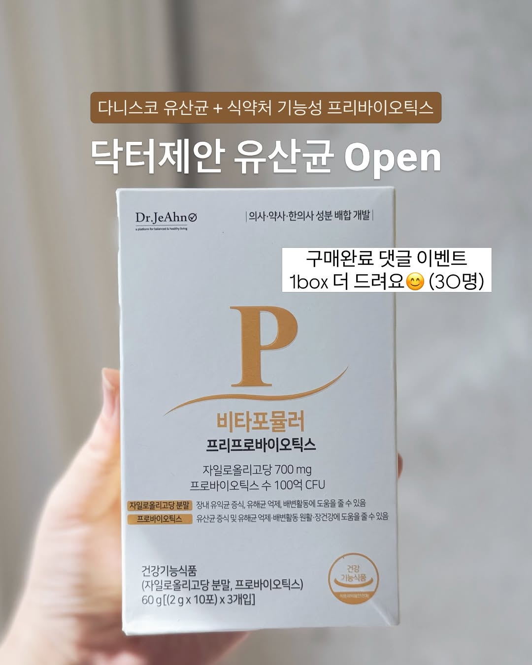 600억 다니스코 균주가 포함된 닥터제안 유산균 공동구매가 오픈합니다. 구매완료 댓글을 남기면 30명에게 본품 1통을 추가로 발송합니다.